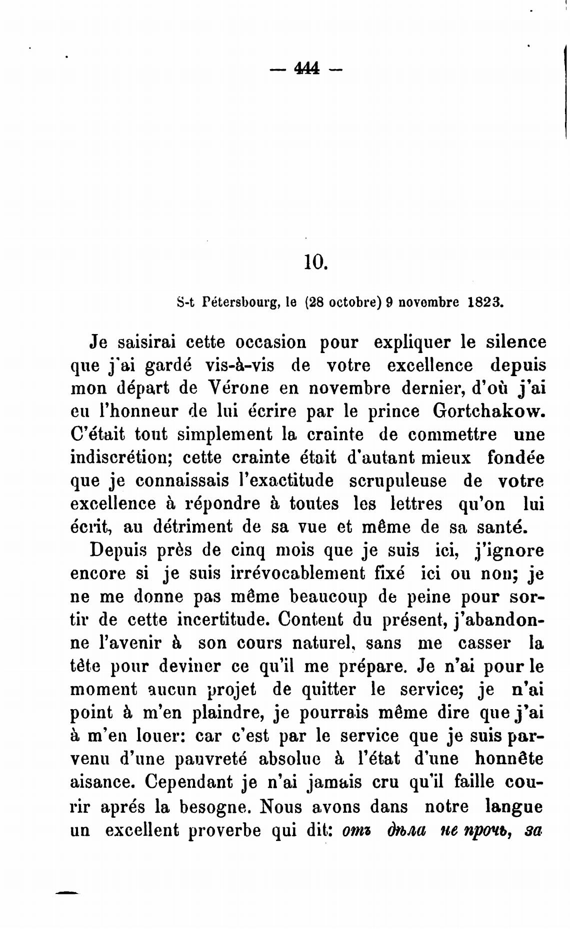 S-t P6tersbourg, le (28 octobre) 9 novombre 1823.