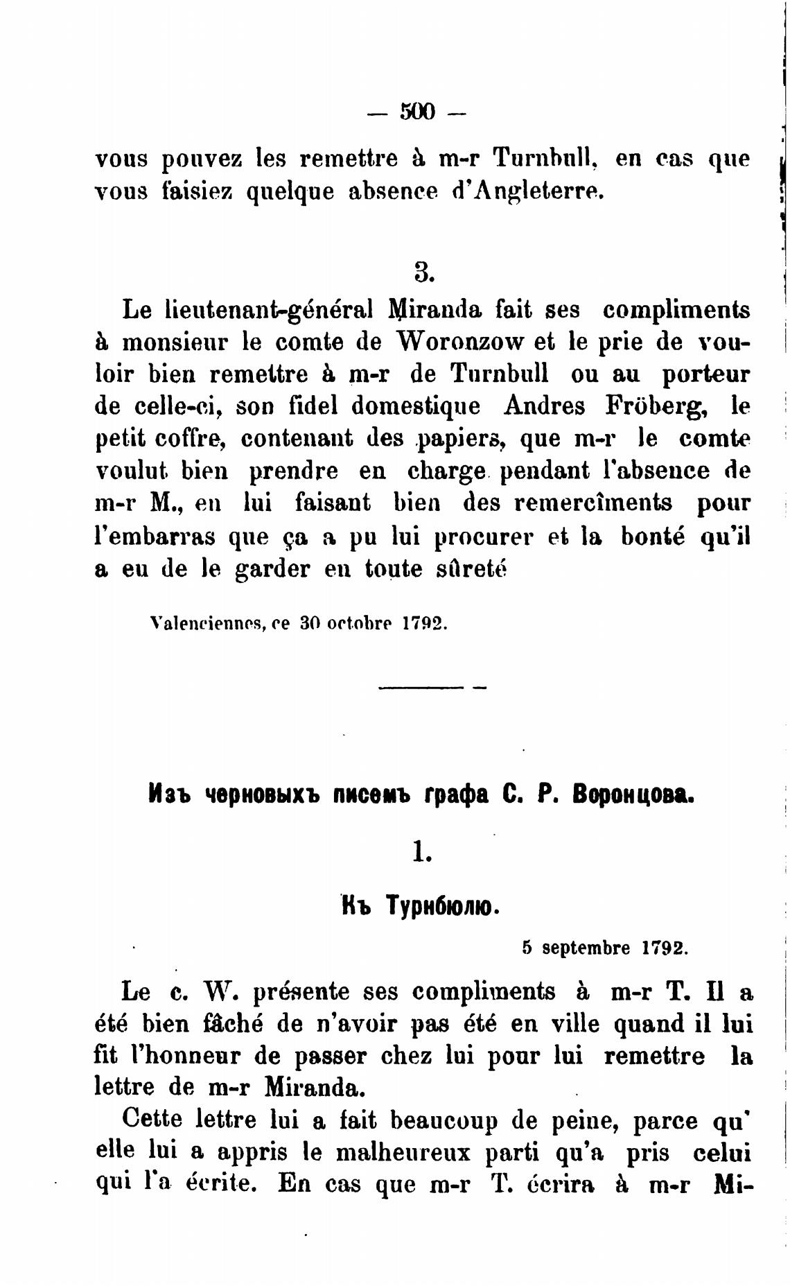 monsieur le comte de Woronzow et le prie de тои-