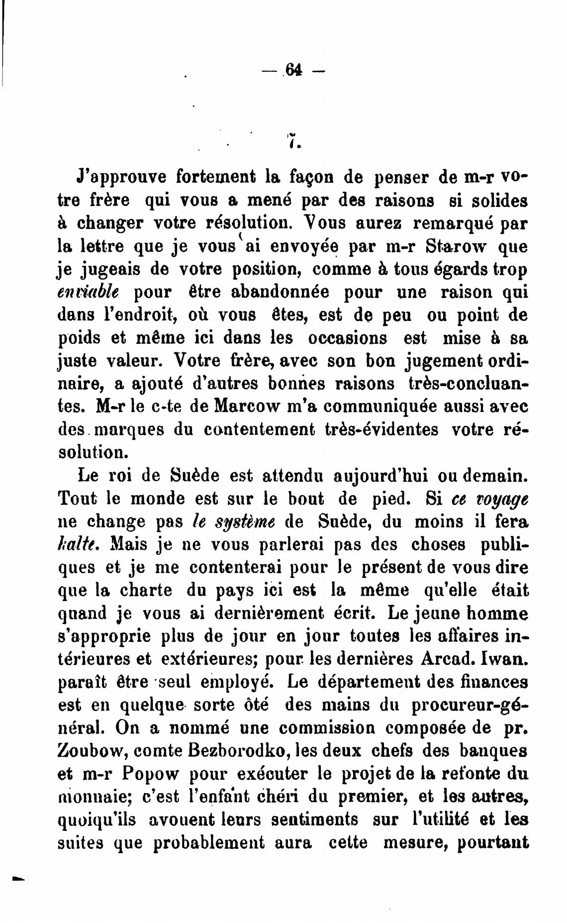 tes. M-r le c-te de Marcow т'а communiqu6e aussi avec