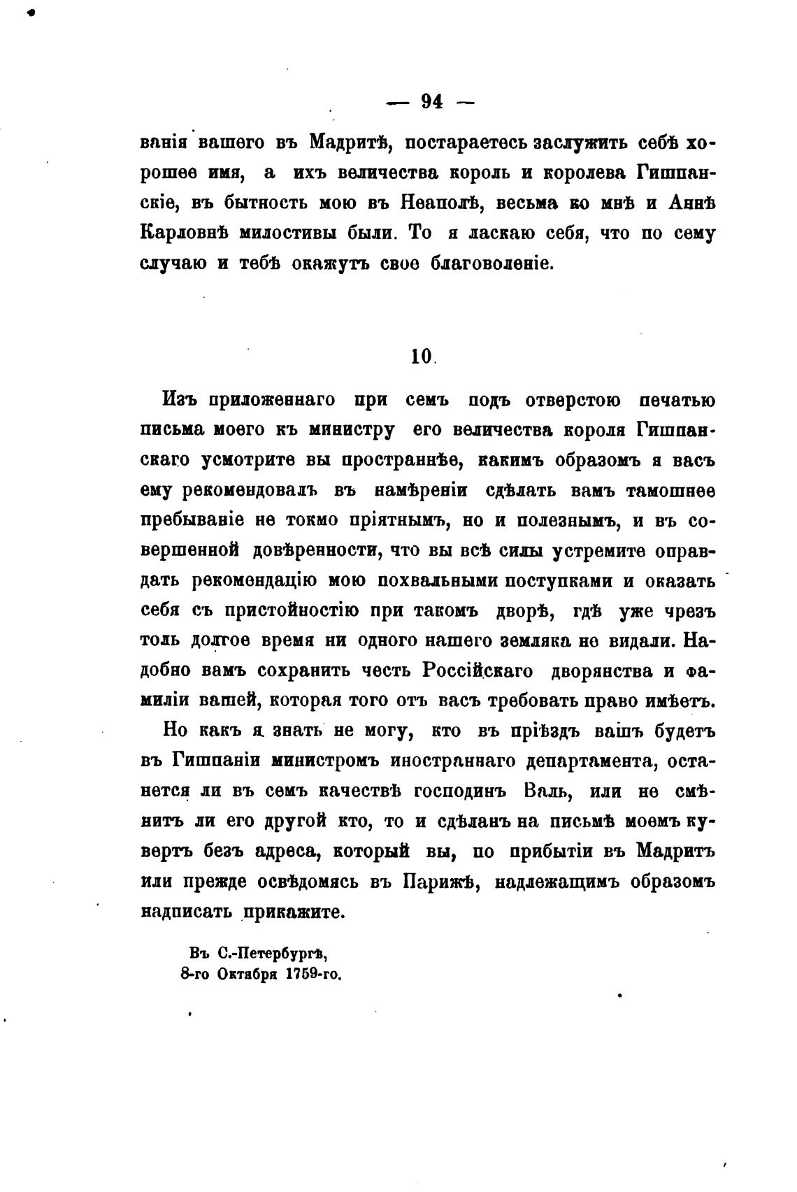 письма моего кь министру его величества короля Гишпан-