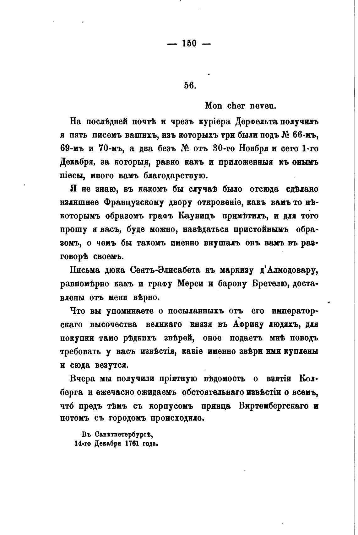 14-го Девабря 1761 года.