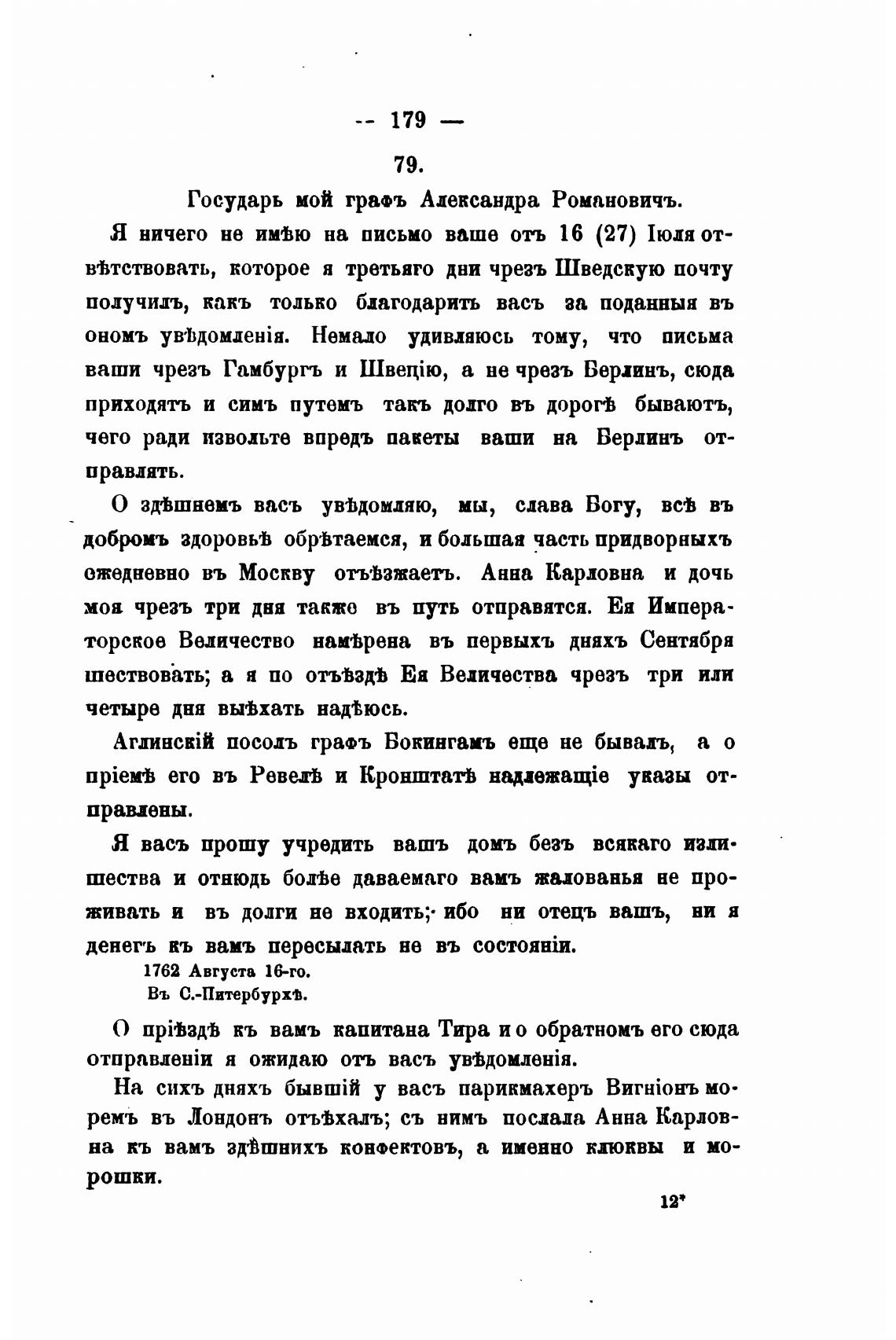Государь мой гра•ъ Александра Романовичъ.
