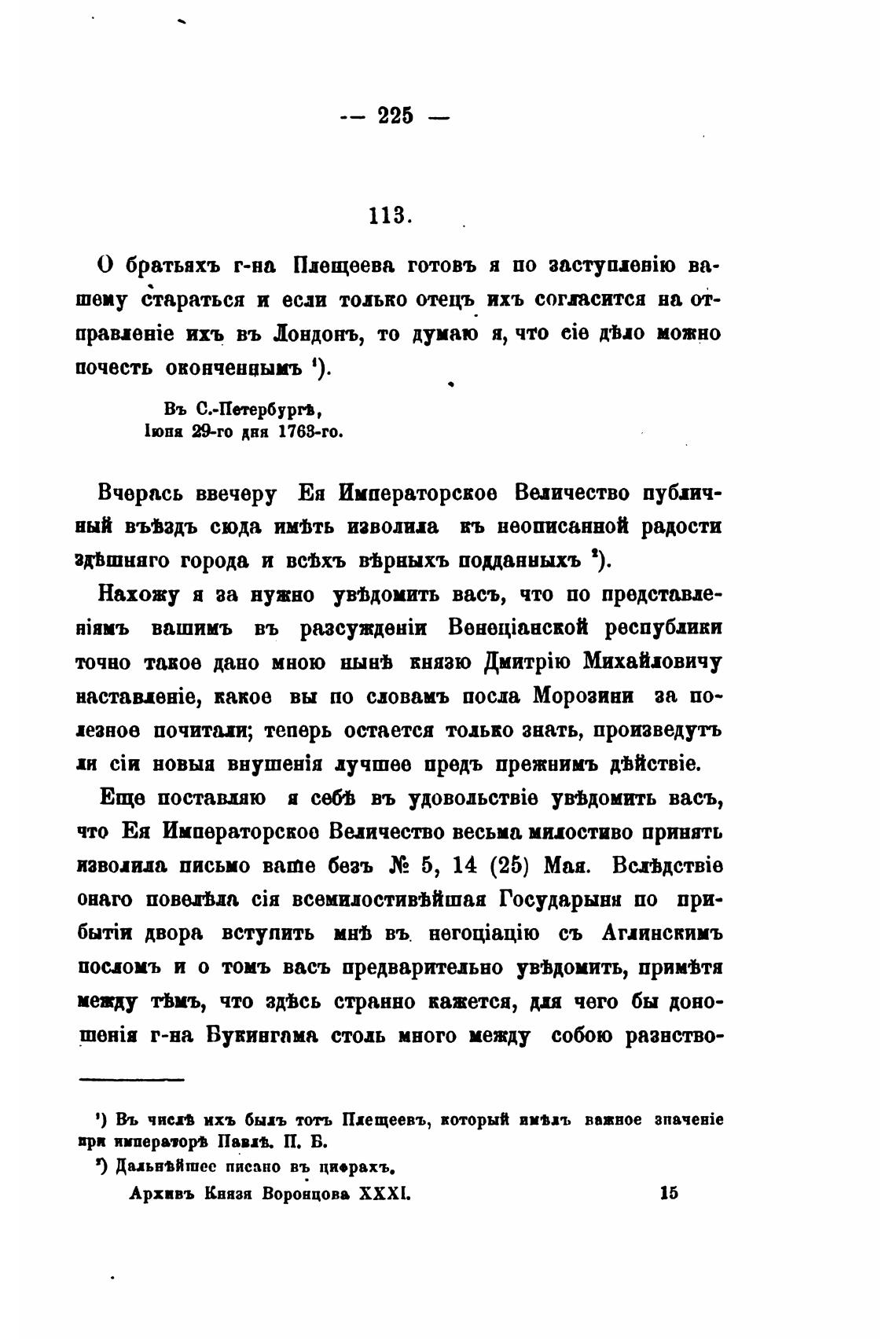 изволила письмо вате безъ 5, 14 (25) Мая. BerMcTBie