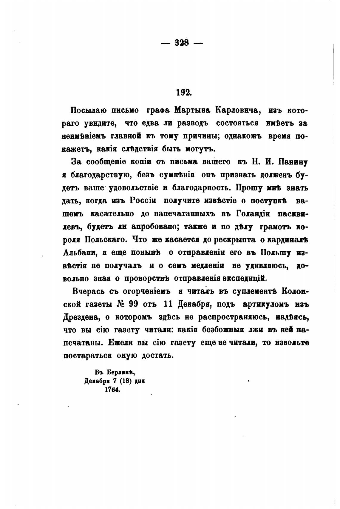Посылаю письмо графа Мартына Карловича, изъ кото-