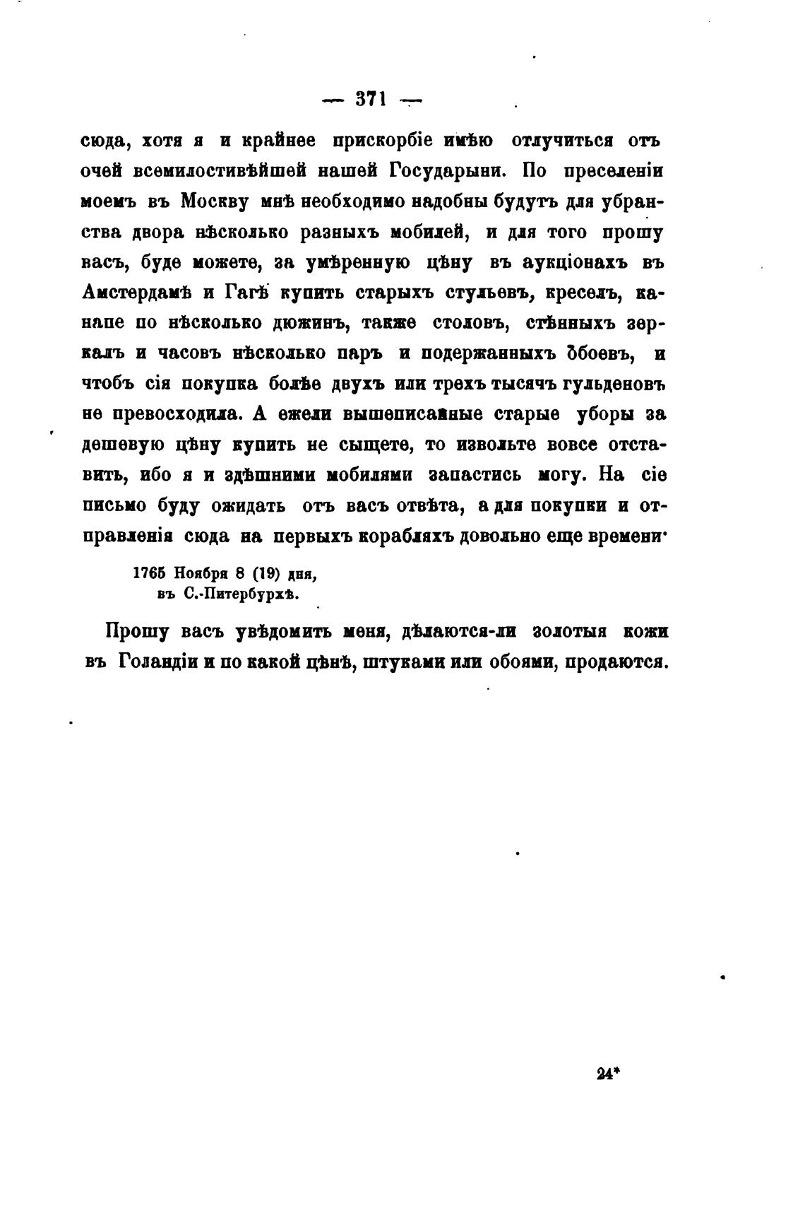 письмо буду ожидать отъ васъ отввта, а для покупви и от-