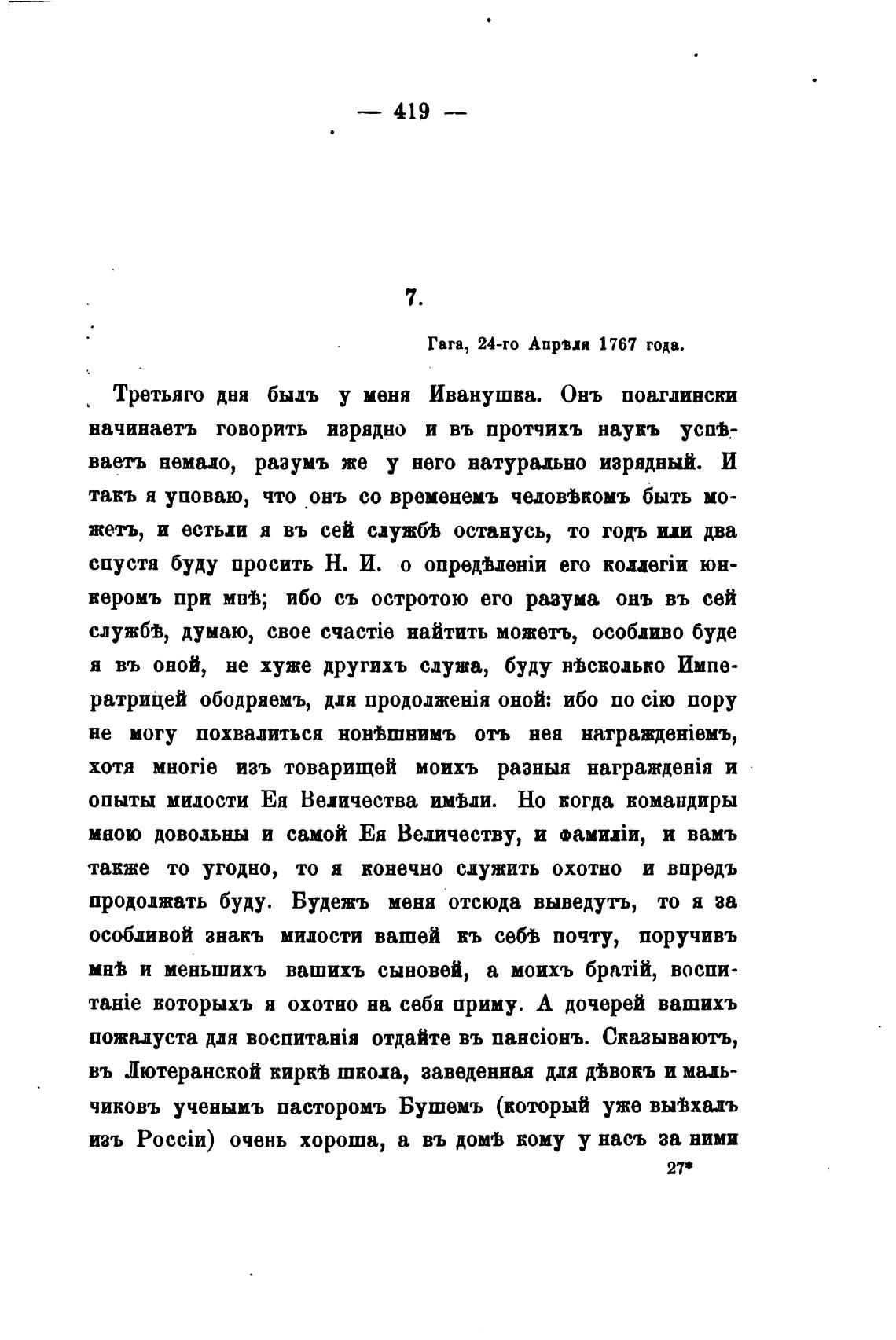 мною довольны и самой Ея Величеству, и Фамији, и вамъ