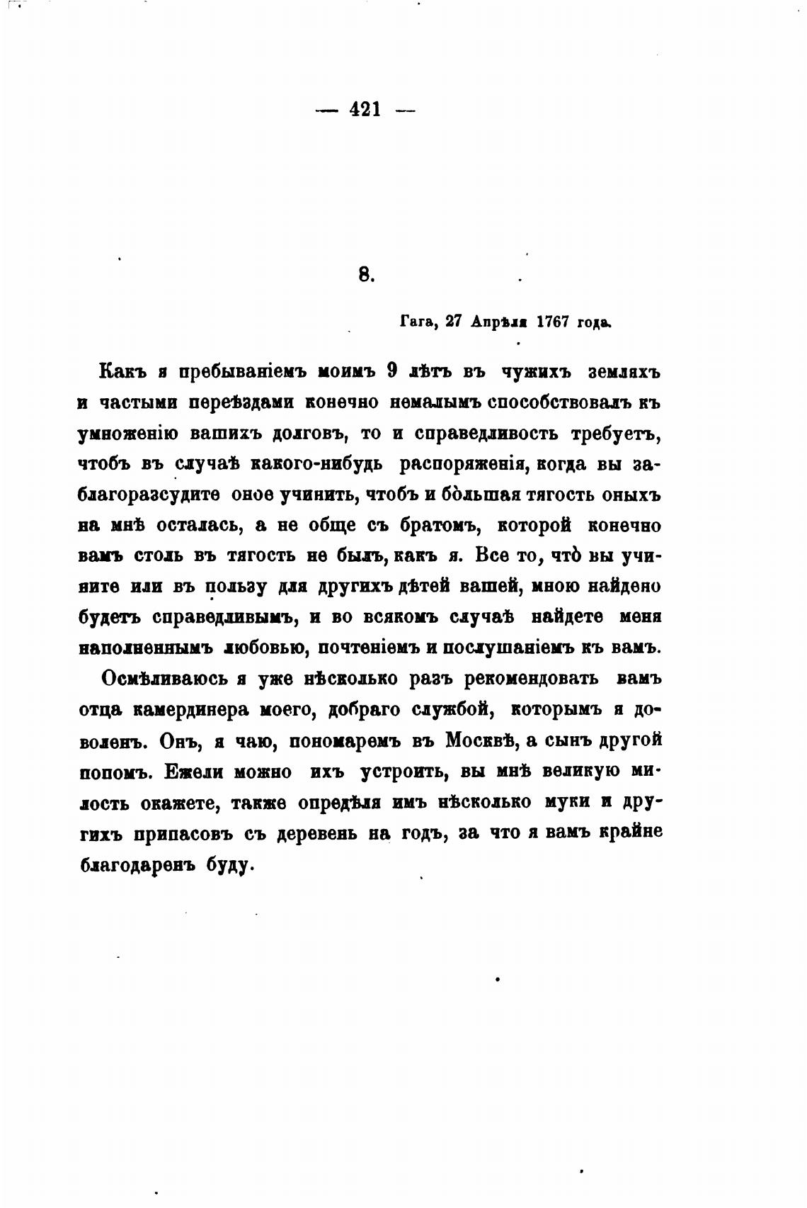 отца камердинера моего, добраго службой, которымъ я до-