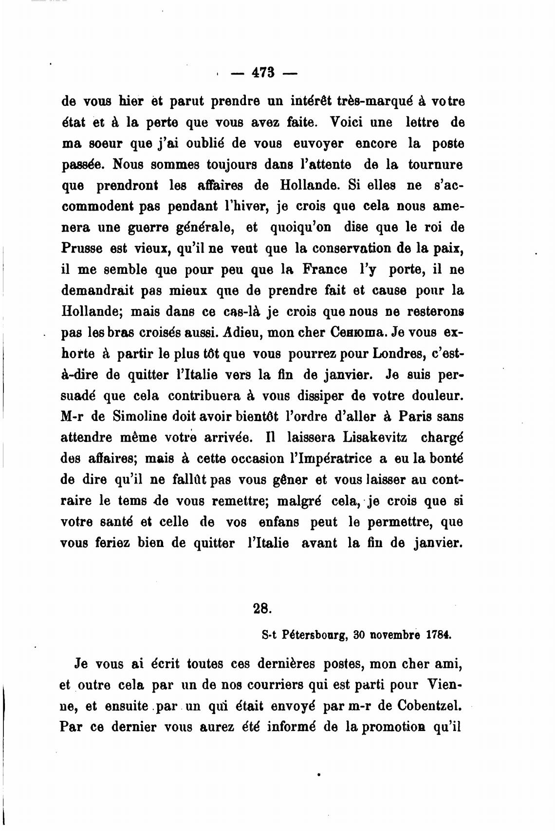 S.t P6tersboarg, 30 novembre 1784.