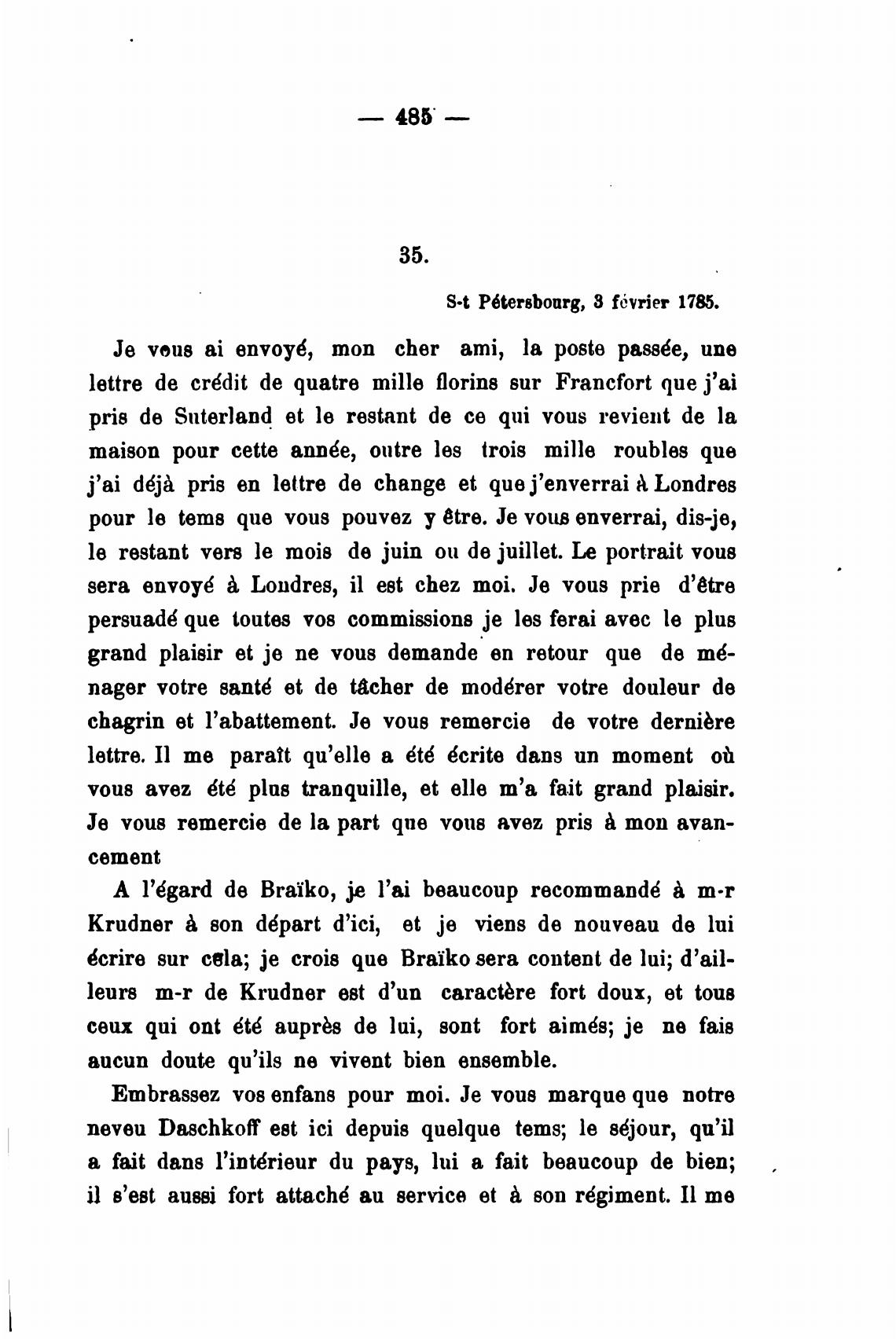 S•t P6tersbourg, 8 fbyrier 1785.
