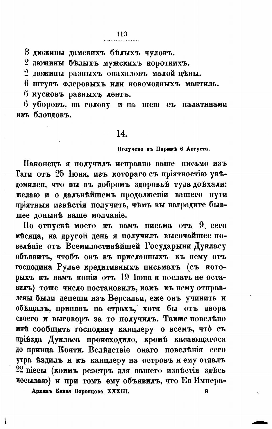 Архввъ Квявя Воронцова XXXIII.