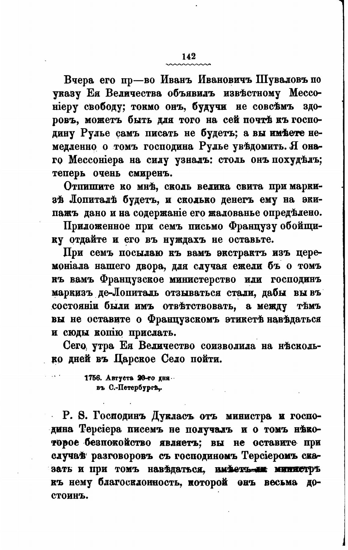 Вчера его пр—во Ивань Ивановичъ Шуваловъ по