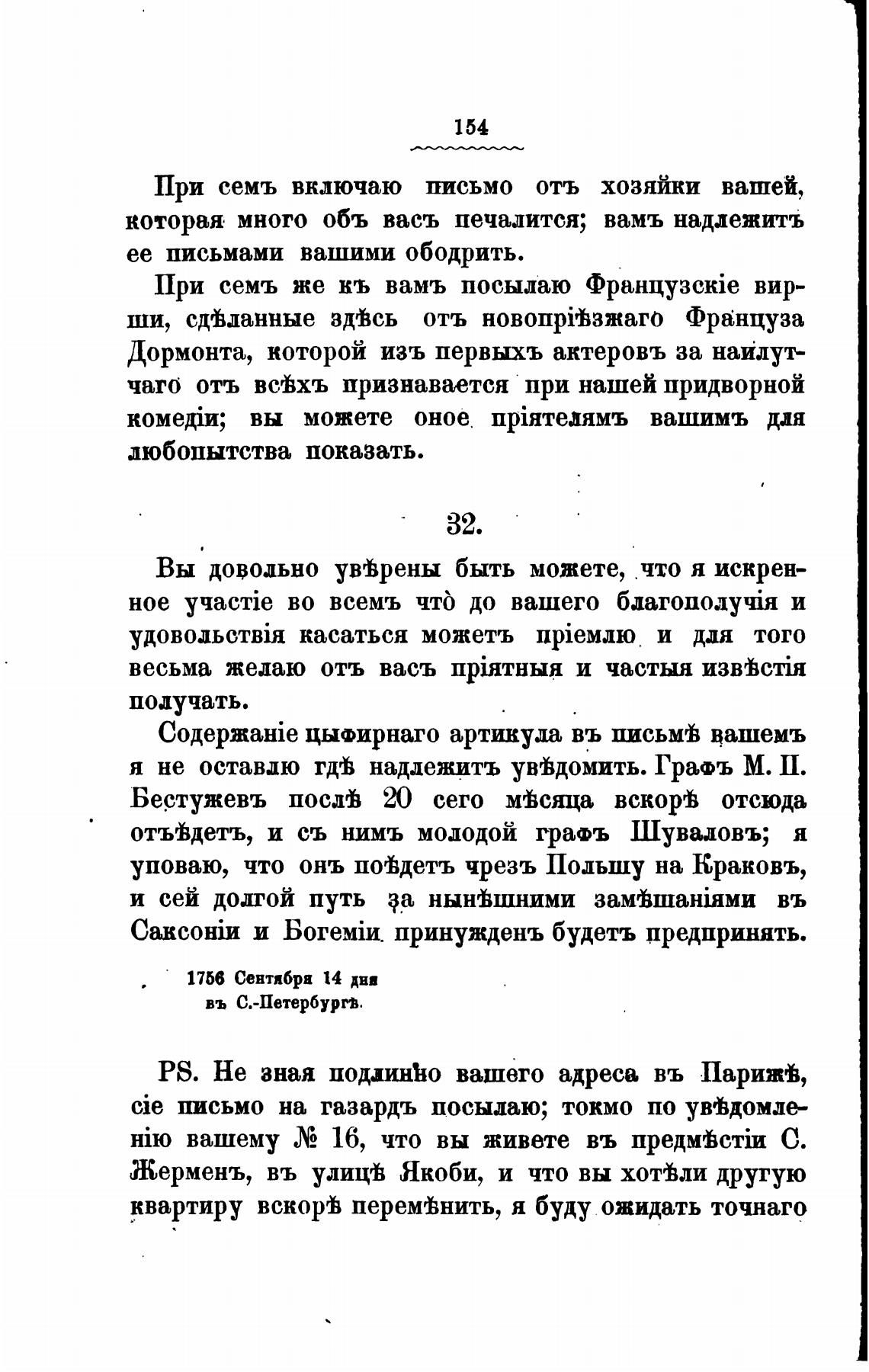 PS. Не зная поџинћо вашего адреса въ Парим,