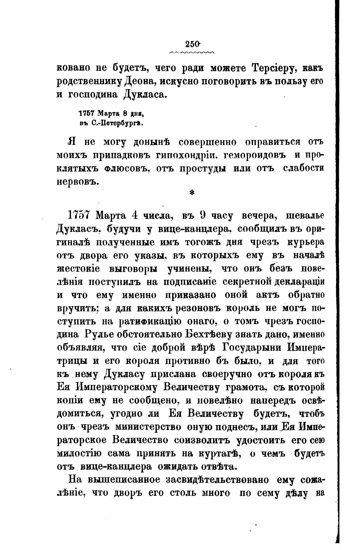 1757 Марта 4 числа, въ 9 часу вечера, шевалье