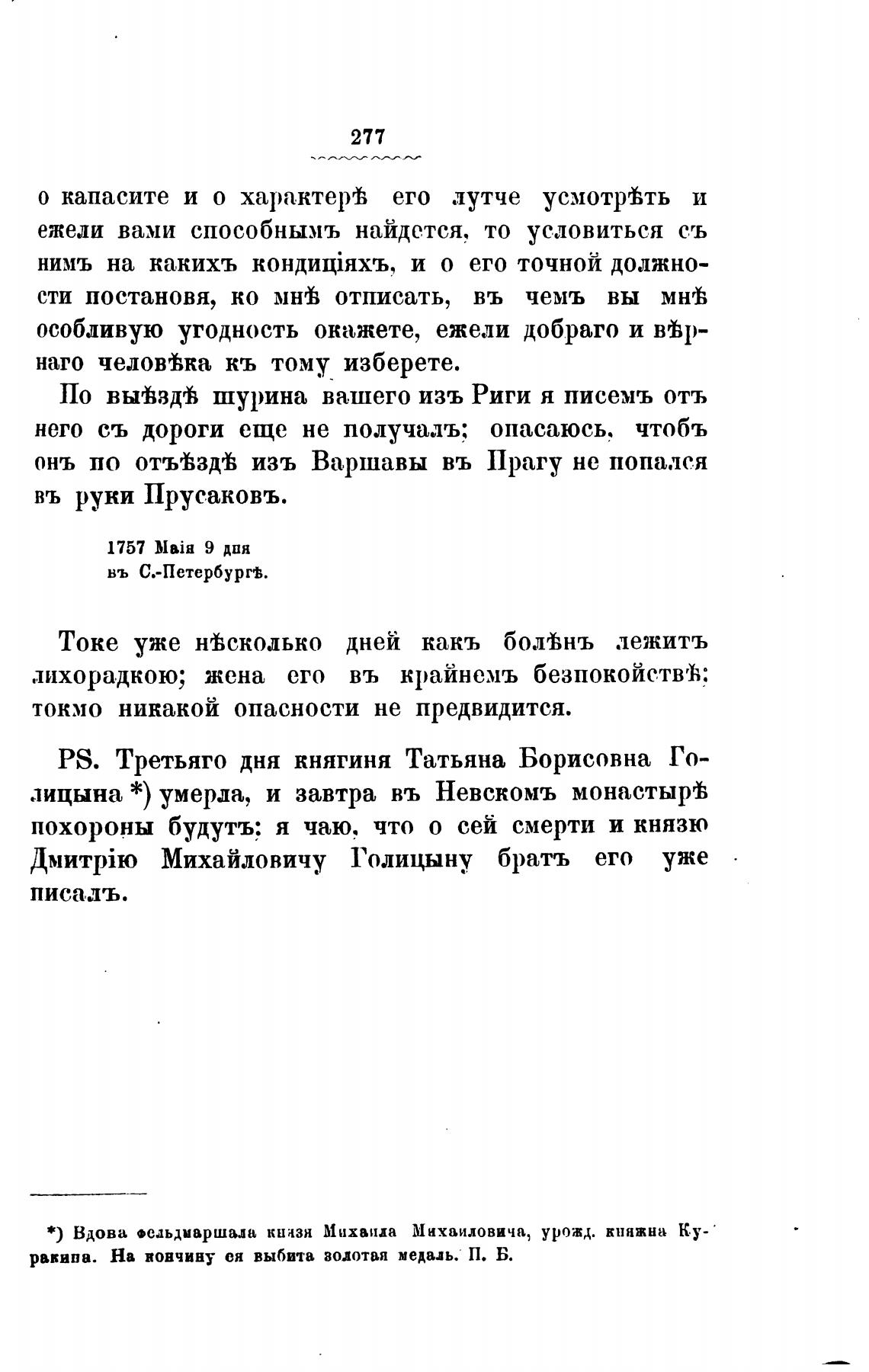 PS. Третьяго дня княгиня Татьяна Борисовна Го-