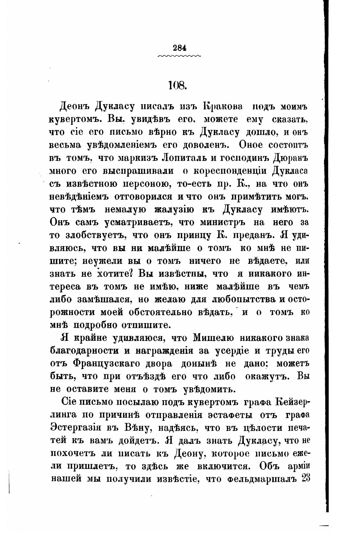 Cie письмо посылаю подъ кувертомъ графа Кейзер-