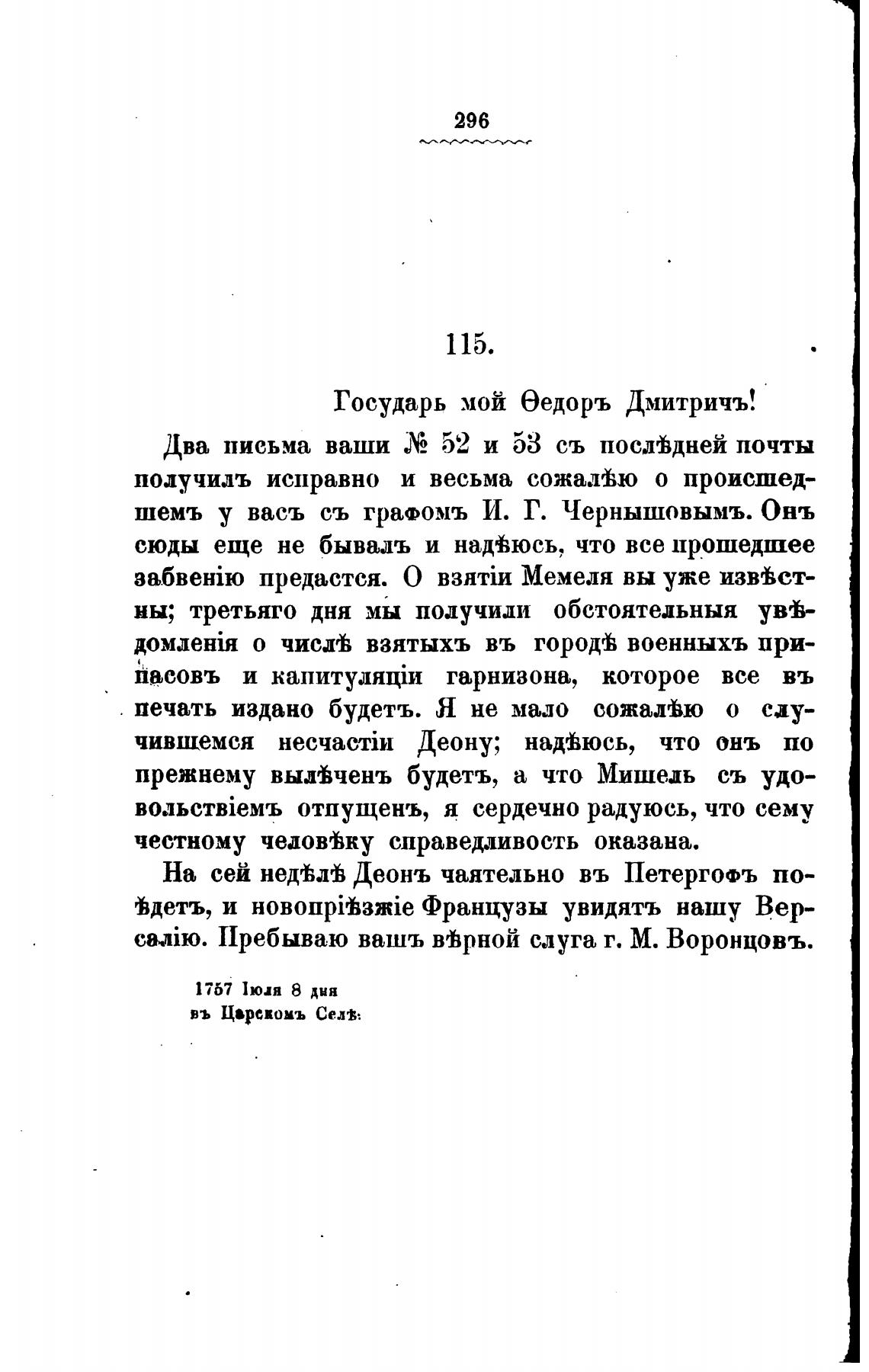 Пребываю вашъ вЈрной слуга г. М. Воронцовъ.