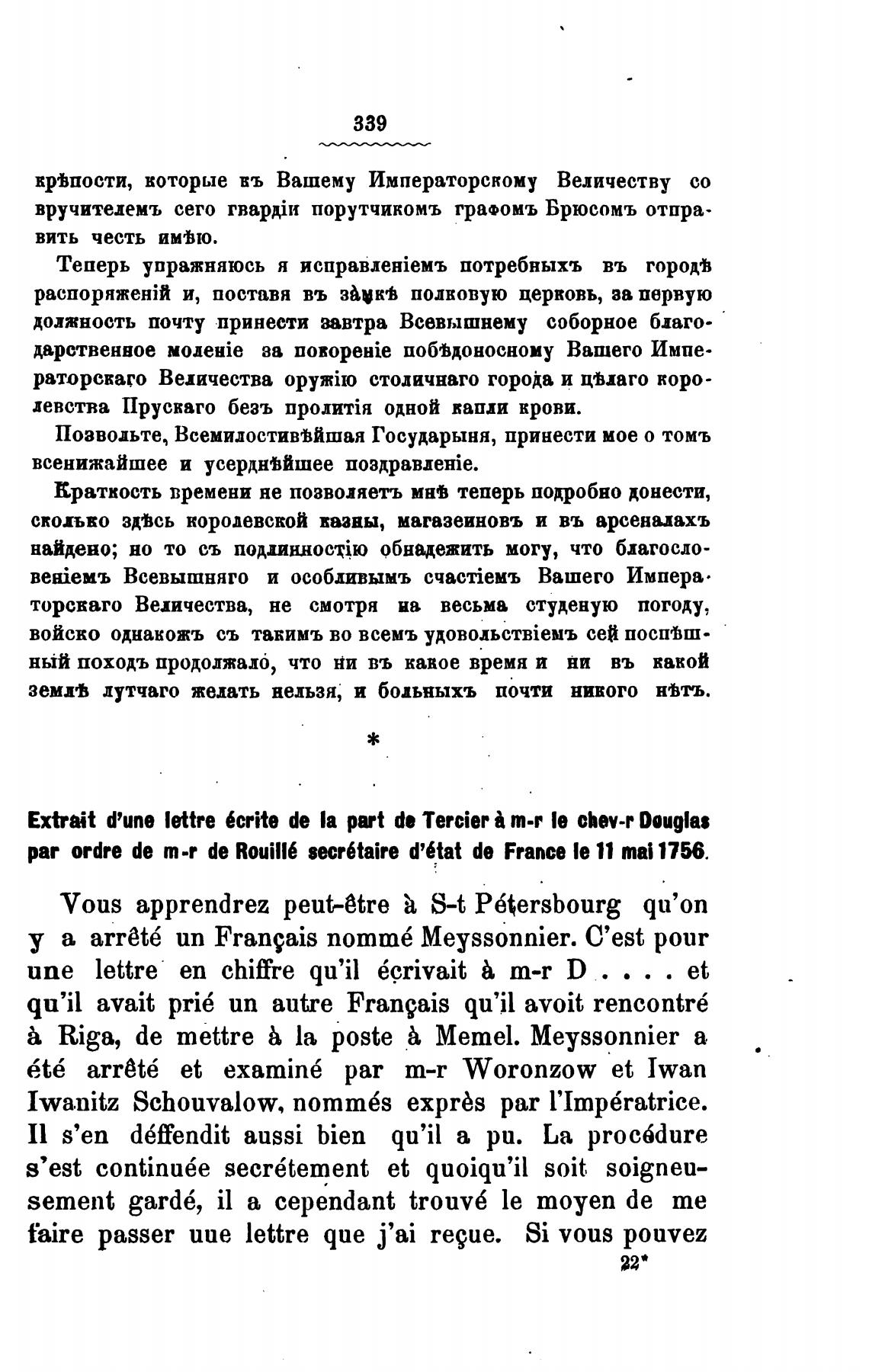 вручителемъ сего порутчикомъ гра•омъ Брюсомъ отпра.