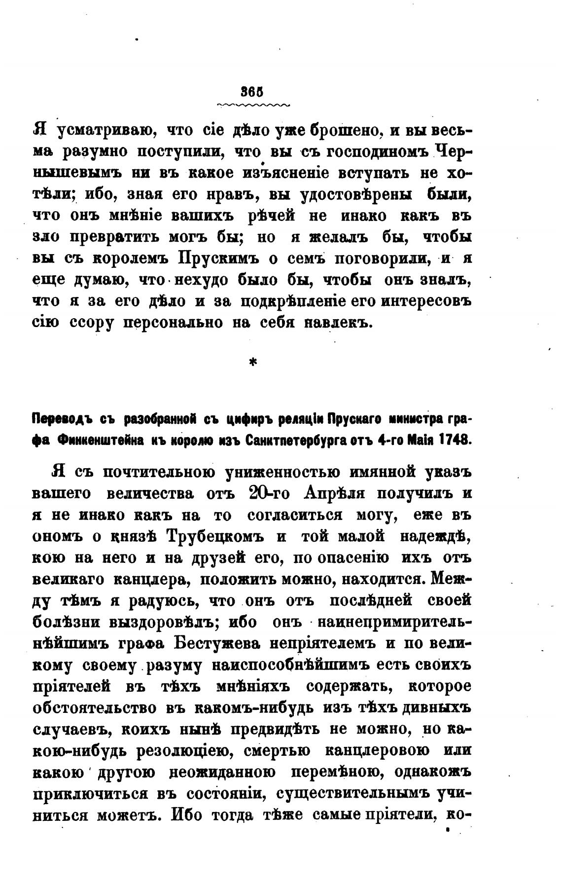 фа Финкенштейна кь корот изъ Сиктпетарбурга отъ 4-го 1748.