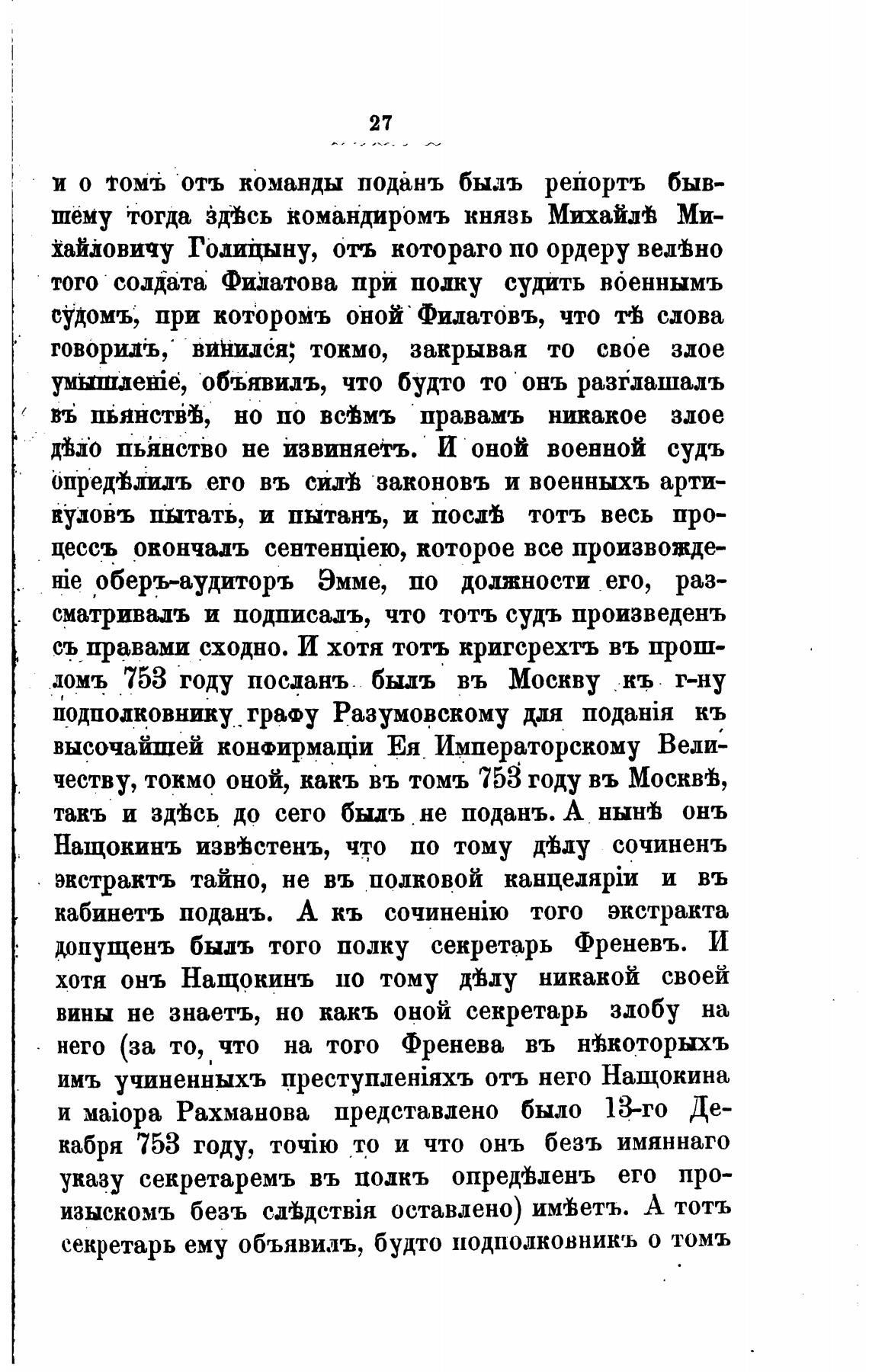 допущень быль того полку секретарь Френевъ. И