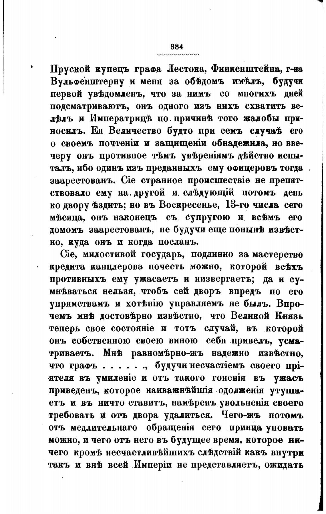 Пруской купецъ графа Лестока, Финкенштейна, г-на