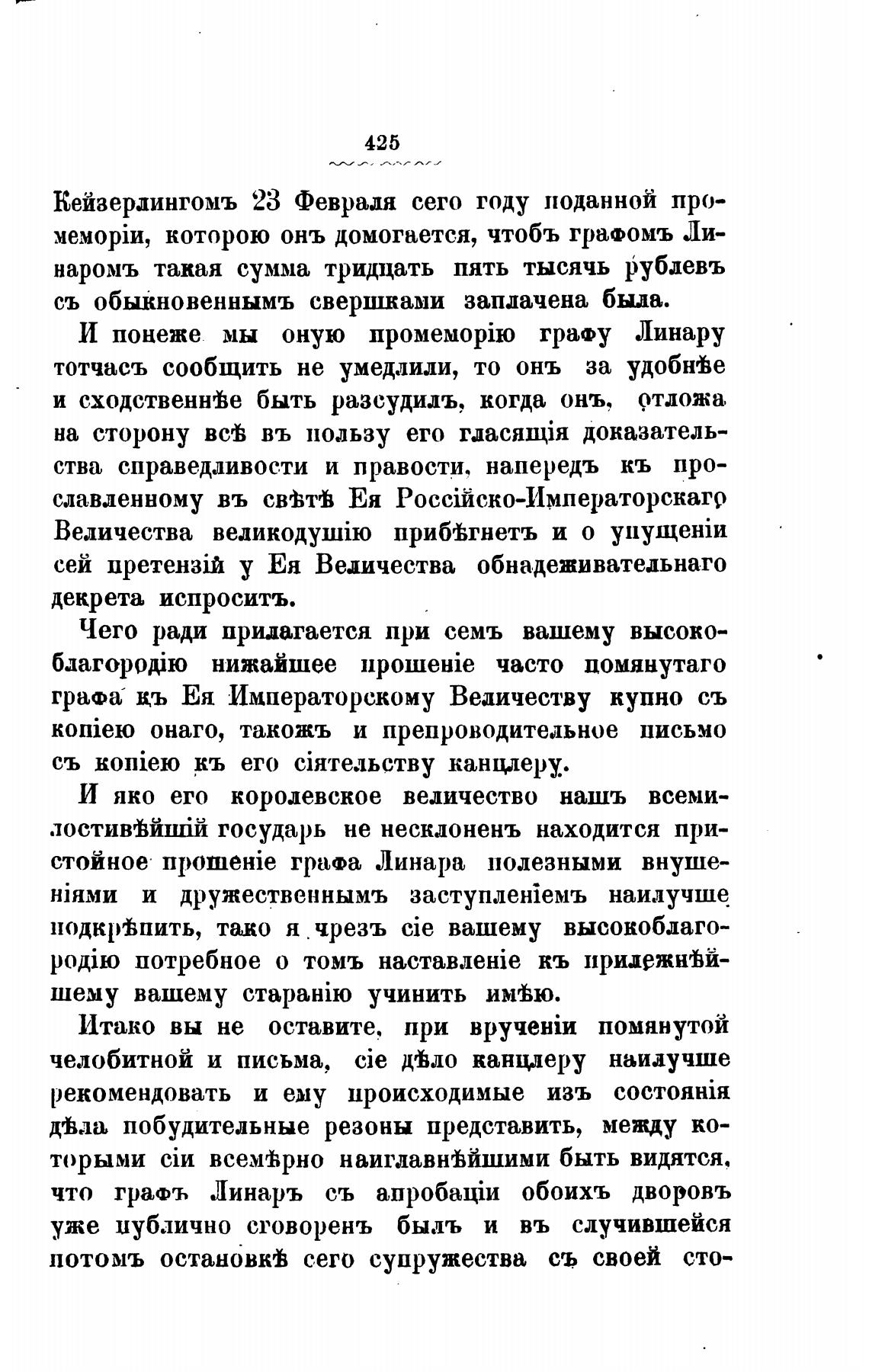 И понеже мы оную графу Линару