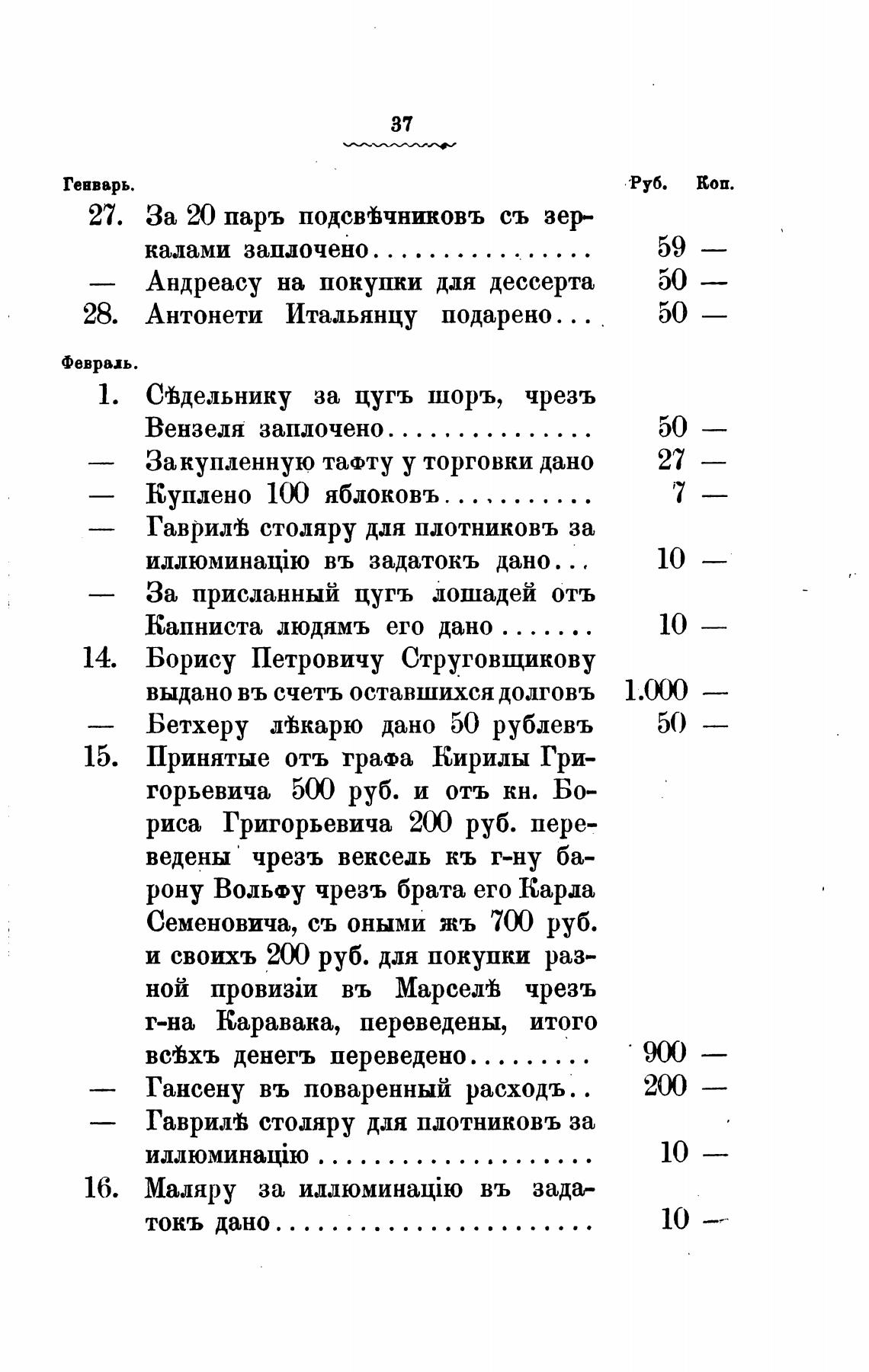 ведены чрезъ векседь кь г-ну ба-