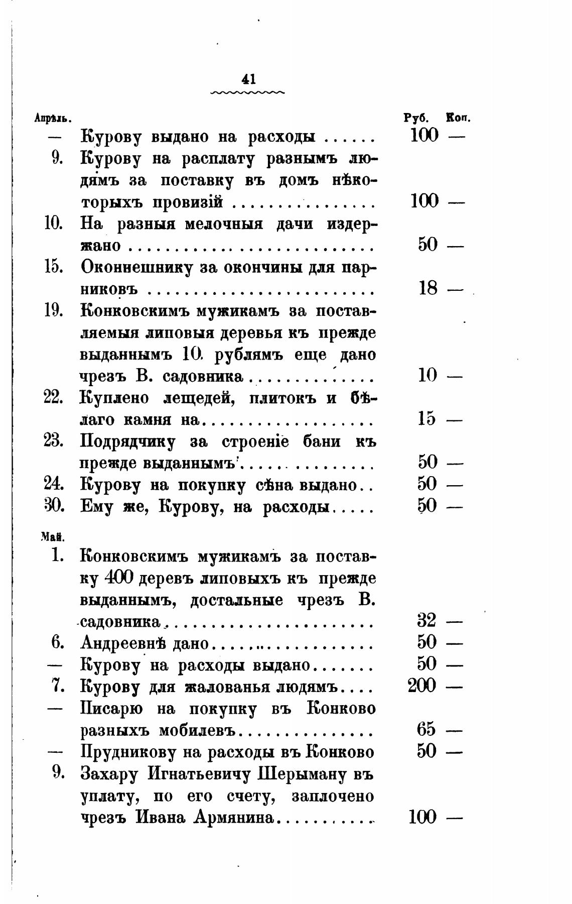 Прудникову на расходы въ Конково