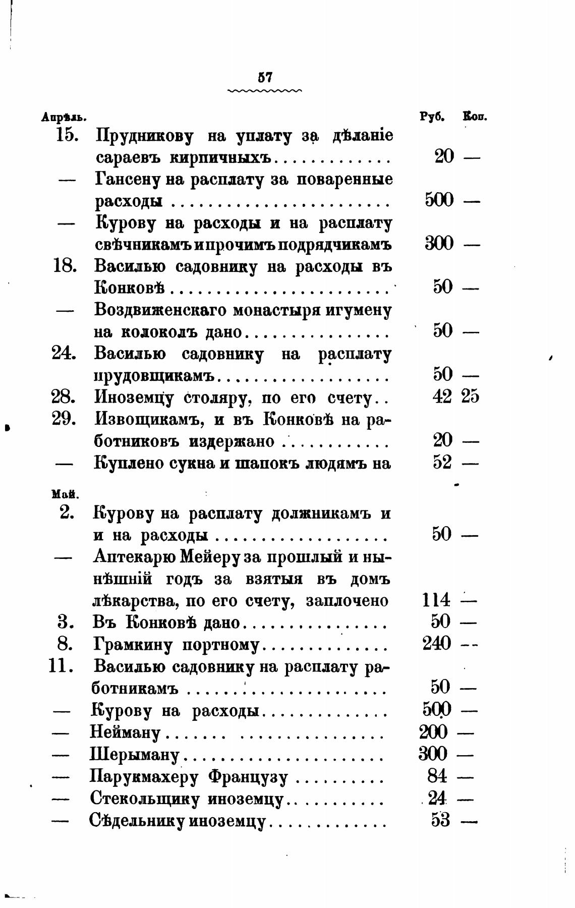 Васидвю садовнику на расходы въ