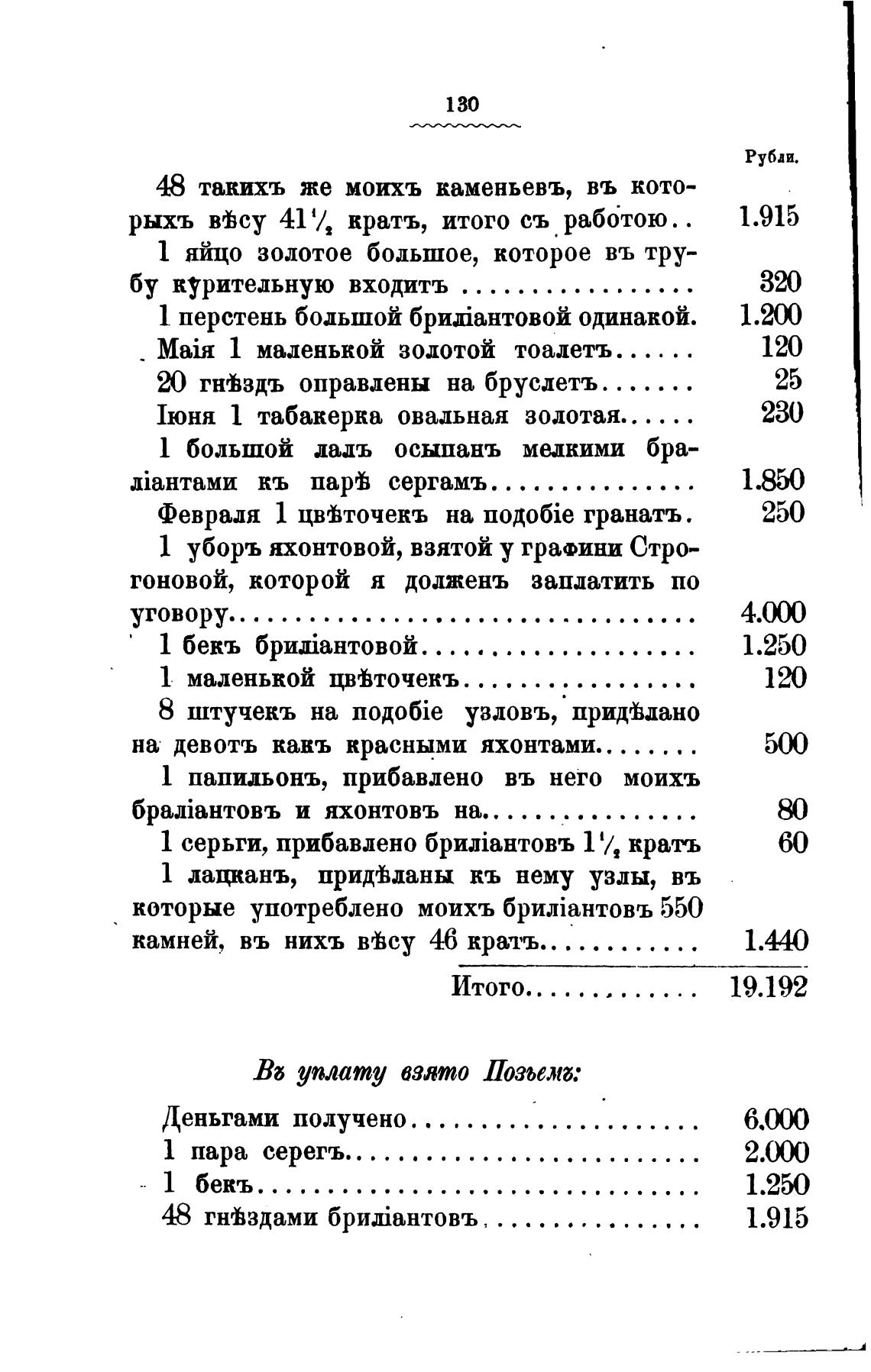 1 уборъ яхонтовой, взятой у графини Стро-