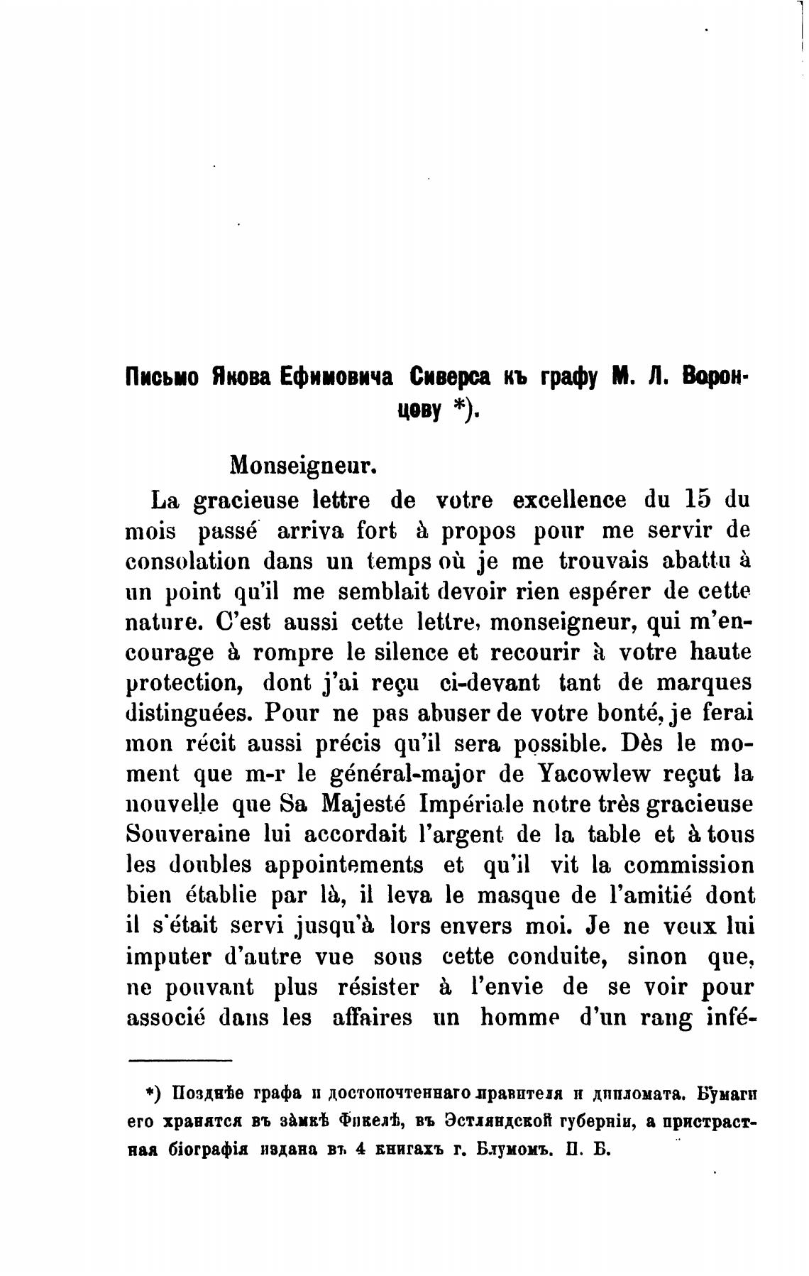Письмо Якова Ефимовича Сивев кь графу М. Л. Ворон.