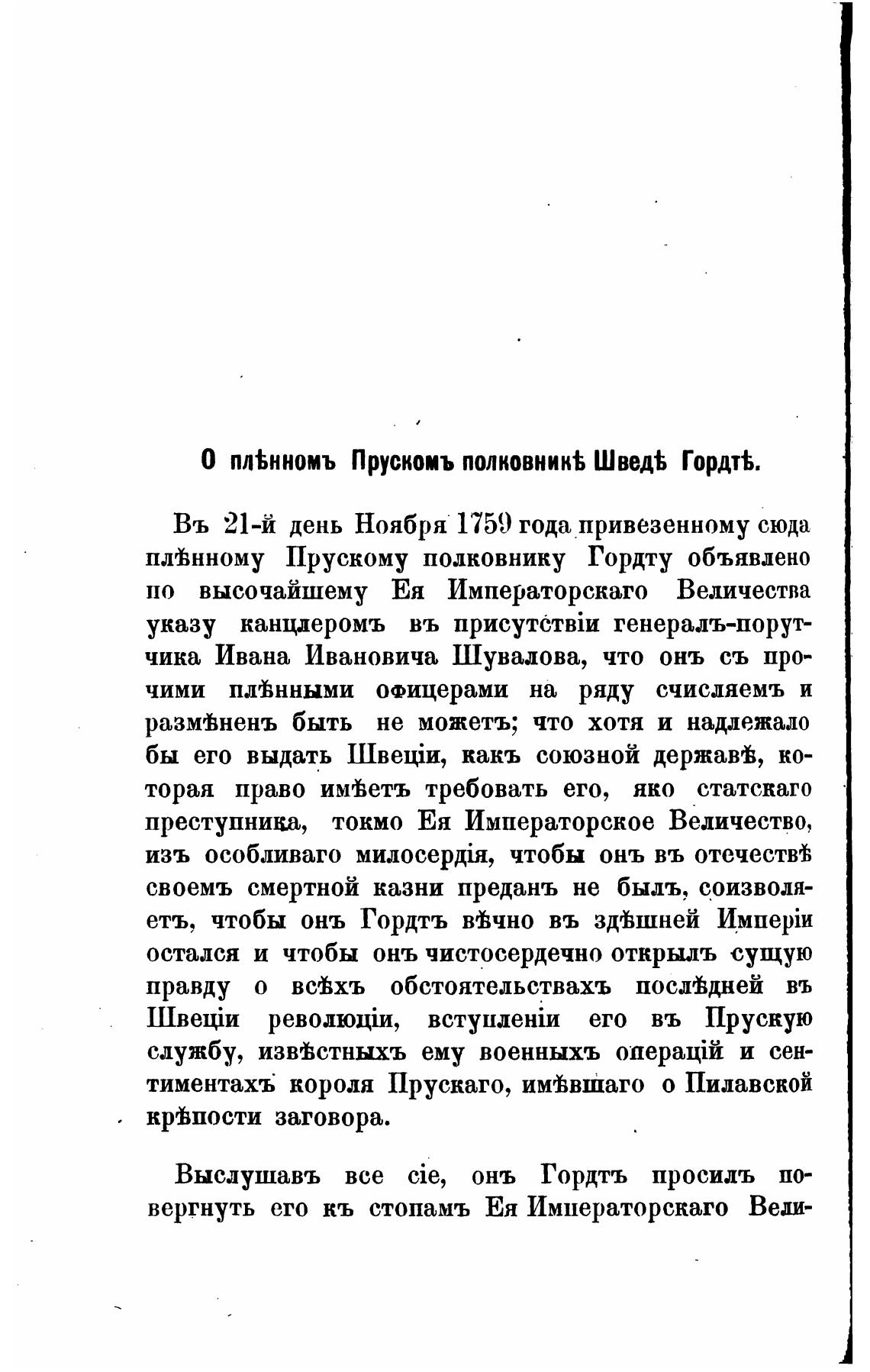 0 пл%нномъ Прускомъ полковник% Швед% Гордт%.