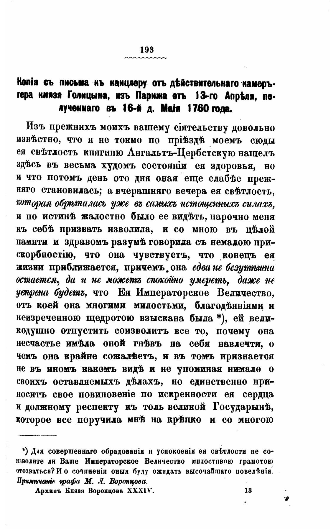Архивъ Князя Воронцова ХХХ К У.