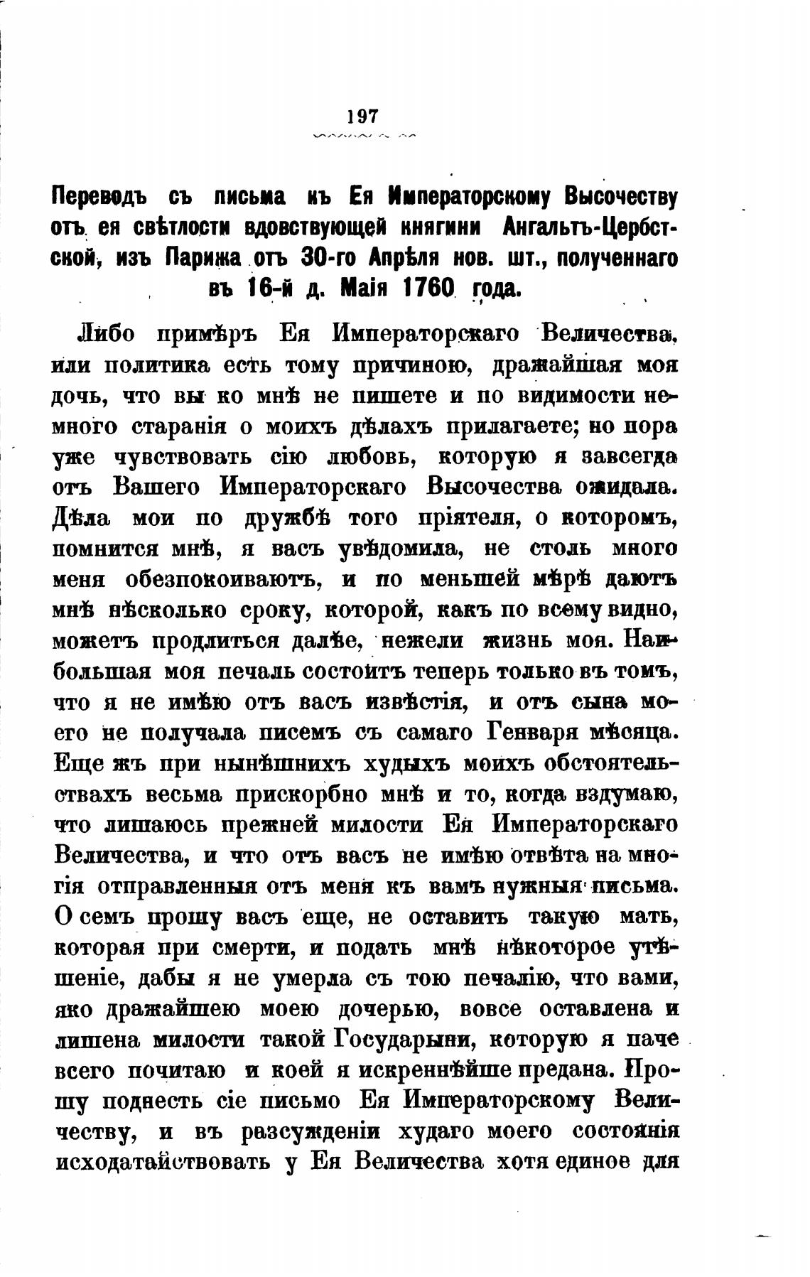 Переводъ съ письма кь Ея Императорскому Высочеству