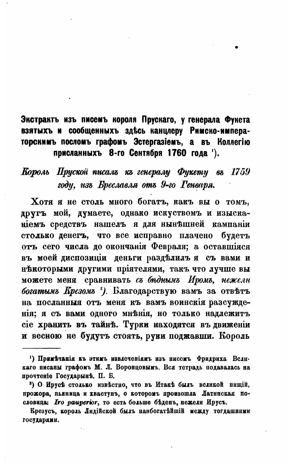 Экстрактъ изъ писемъ короля Пруснаго, у генерала Фукета
