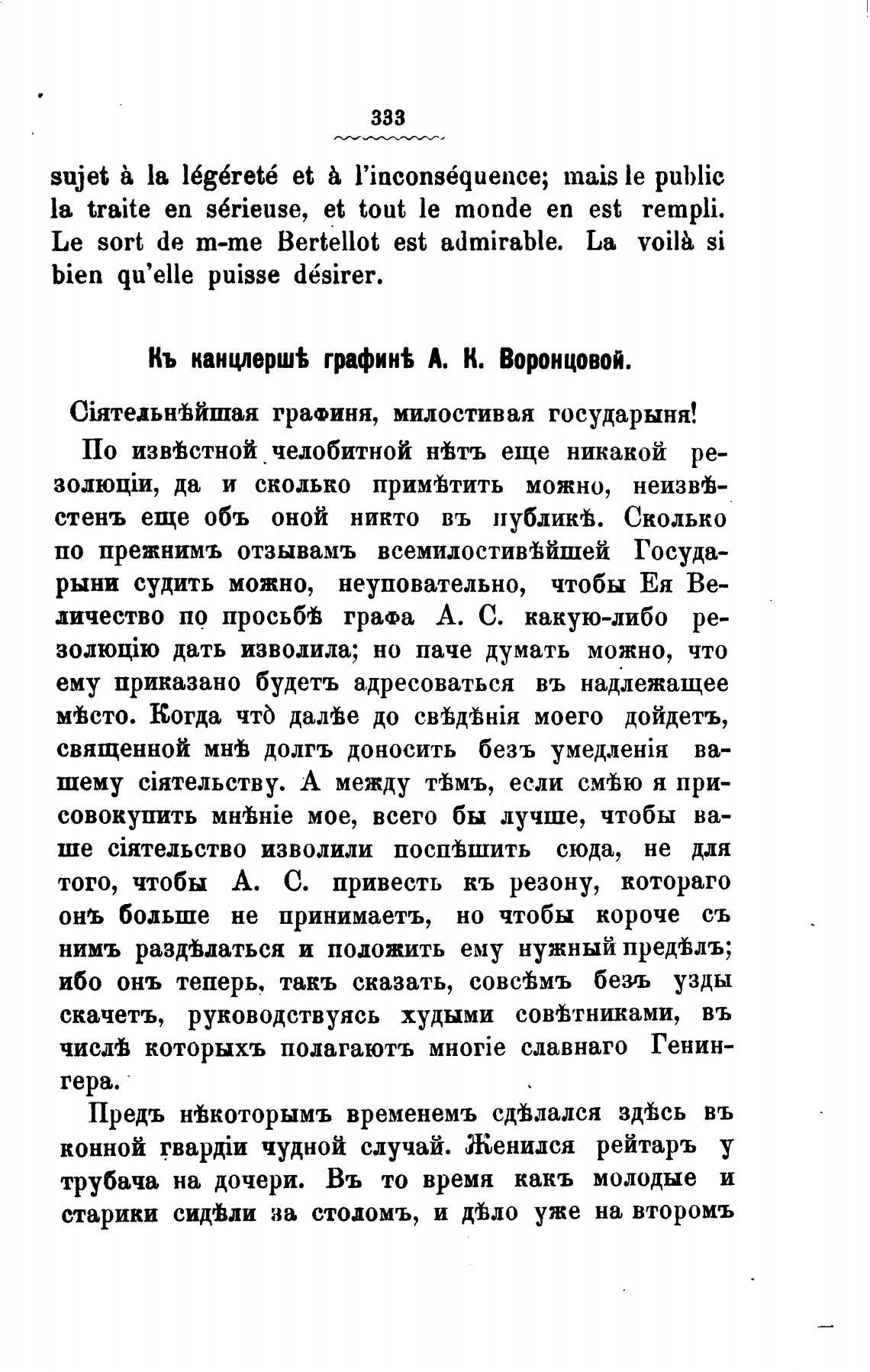 Кь канцлерш% графин% А. К. Воронцовой.