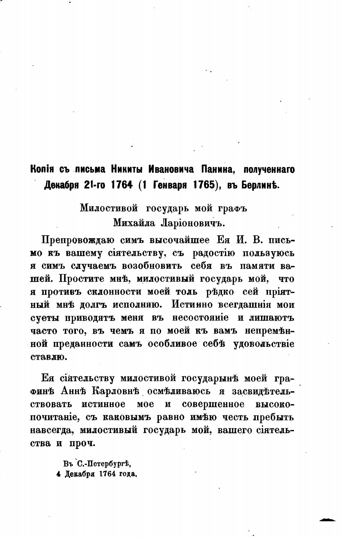 съ письма Никиты Ивановича Панина, полученнаго
