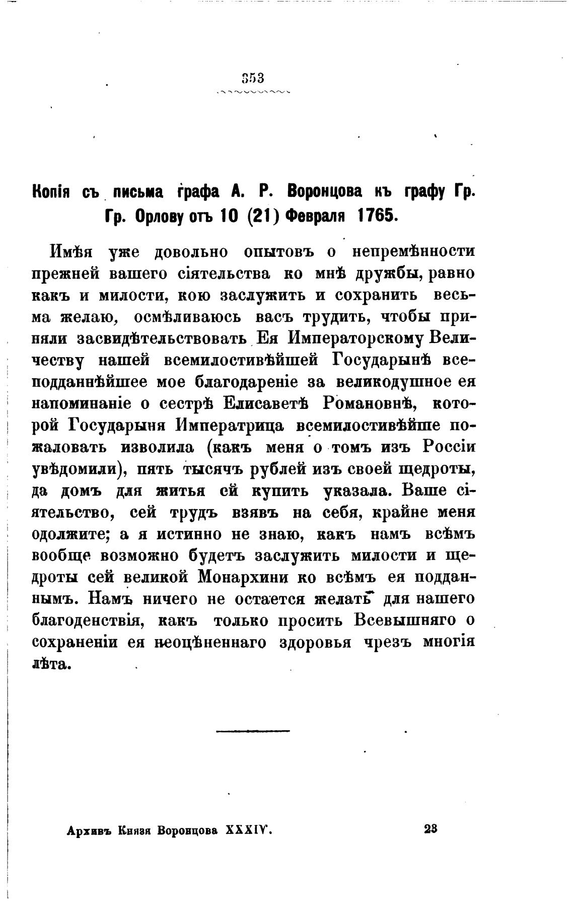 Гр. Орлову отъ 10 (21) Февраля 1765.
