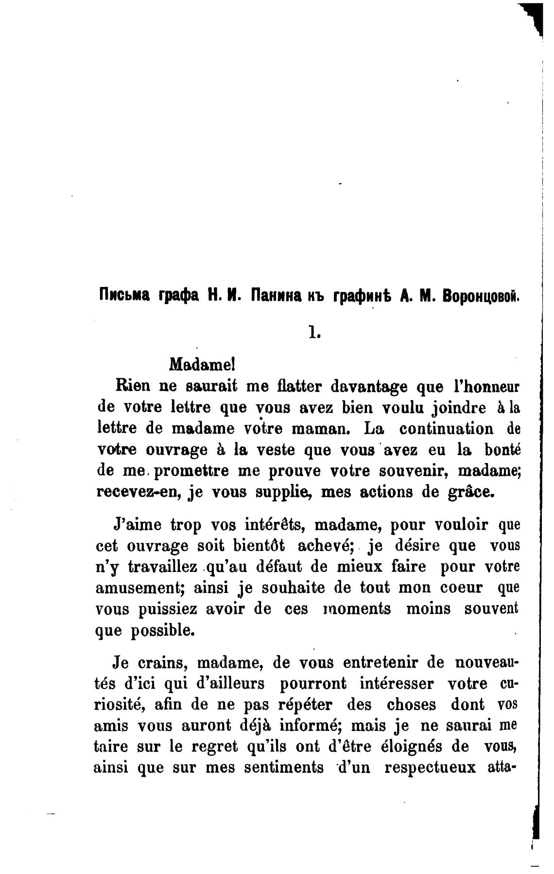 Письма графа Н. И. Панина кь графин% А. М. Воронцовой.