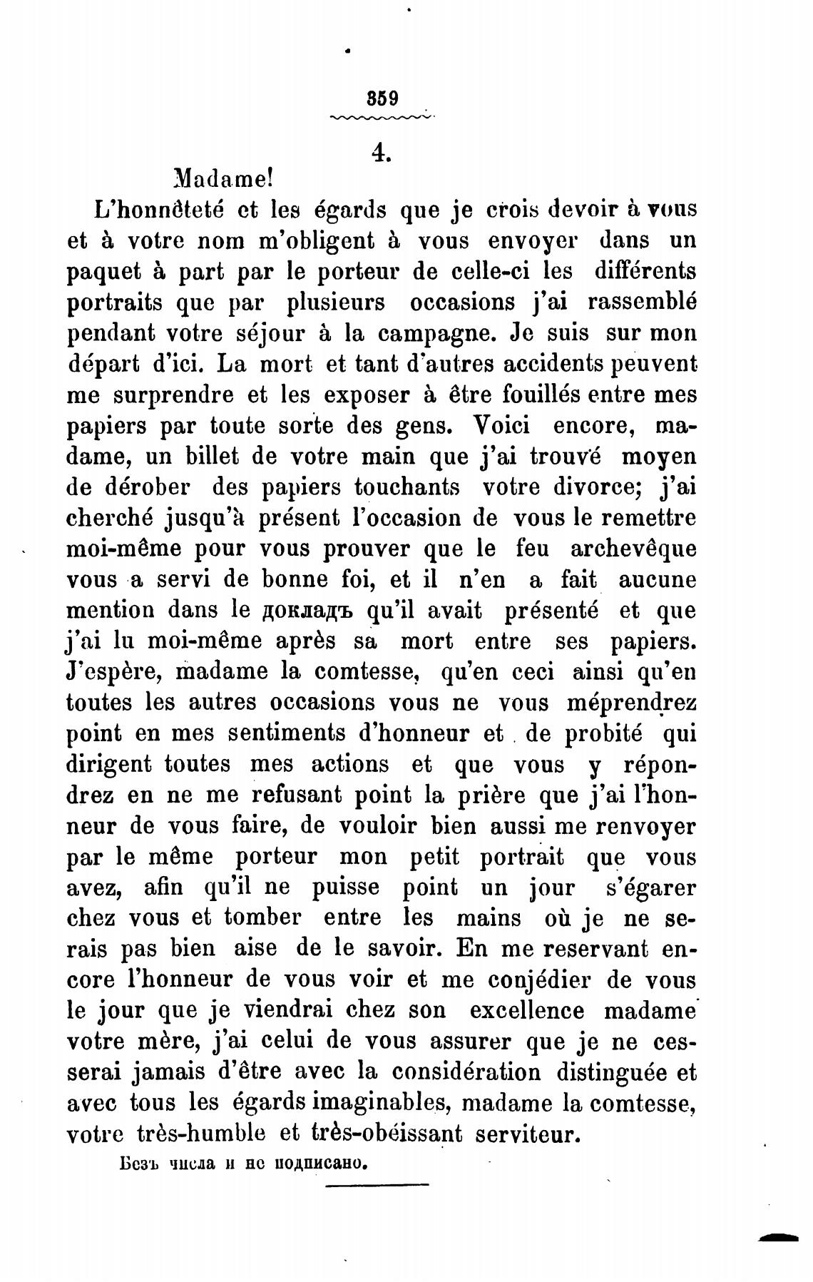 J'espbre, madame la comtesse, qu'en ceci ainsi qu'en