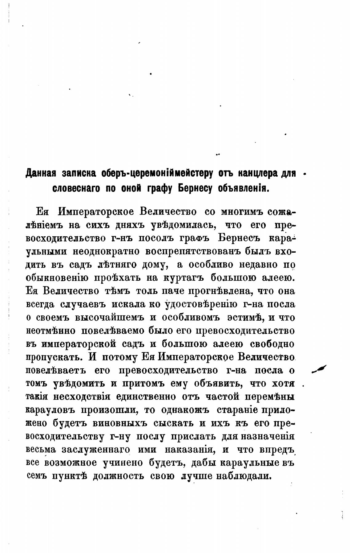 восходительство г-нъ посоль граФъ Бернесъ кара'
