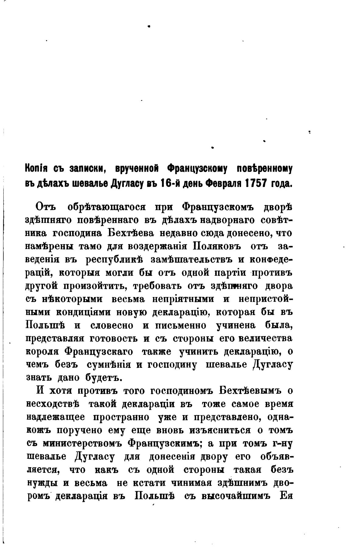въ д%лахъ шевиье Дугласу въ 16-й день Февраля 1757 года.