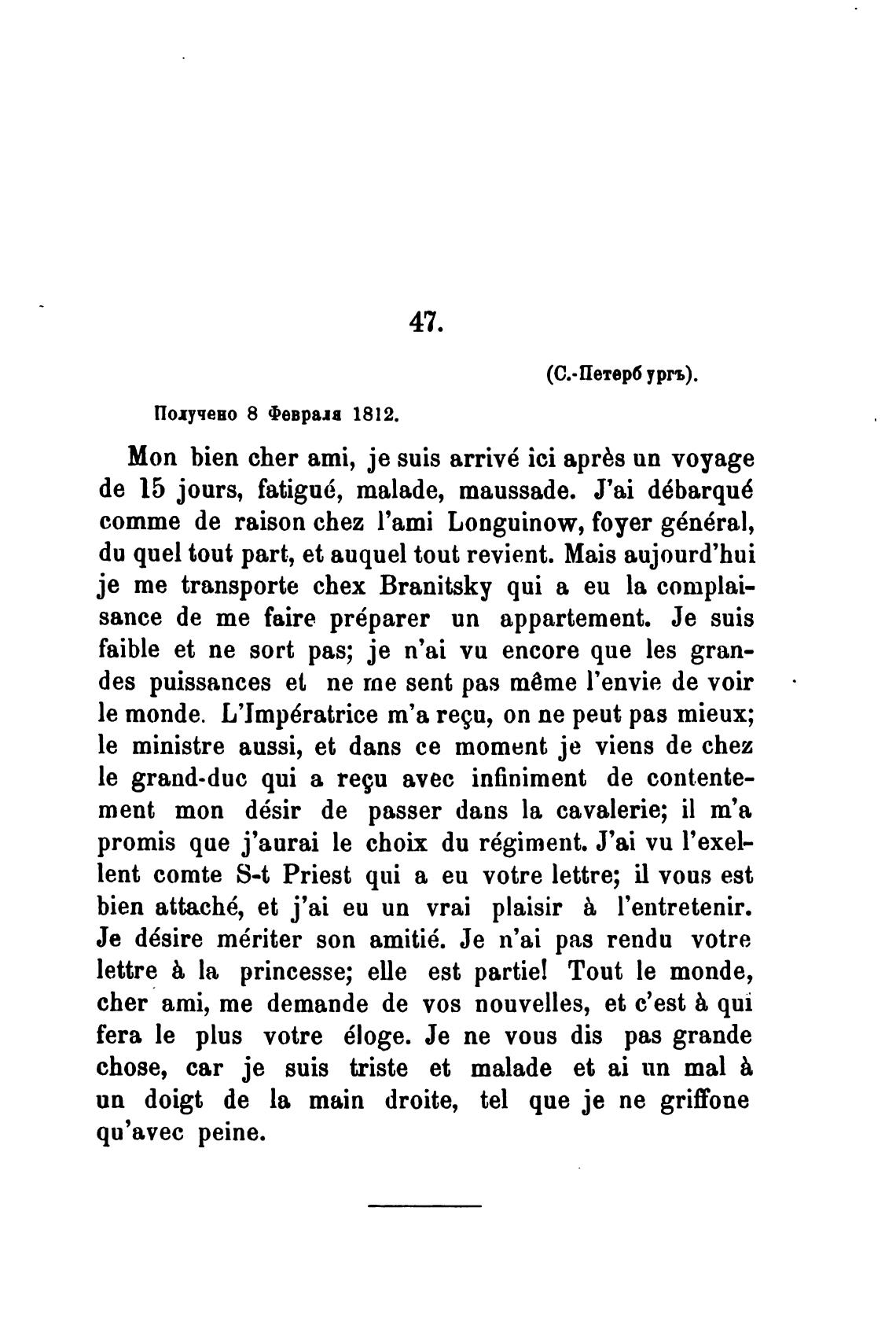 Моп bien cher ami, је suis arriv6 ici aprbs ип voyage