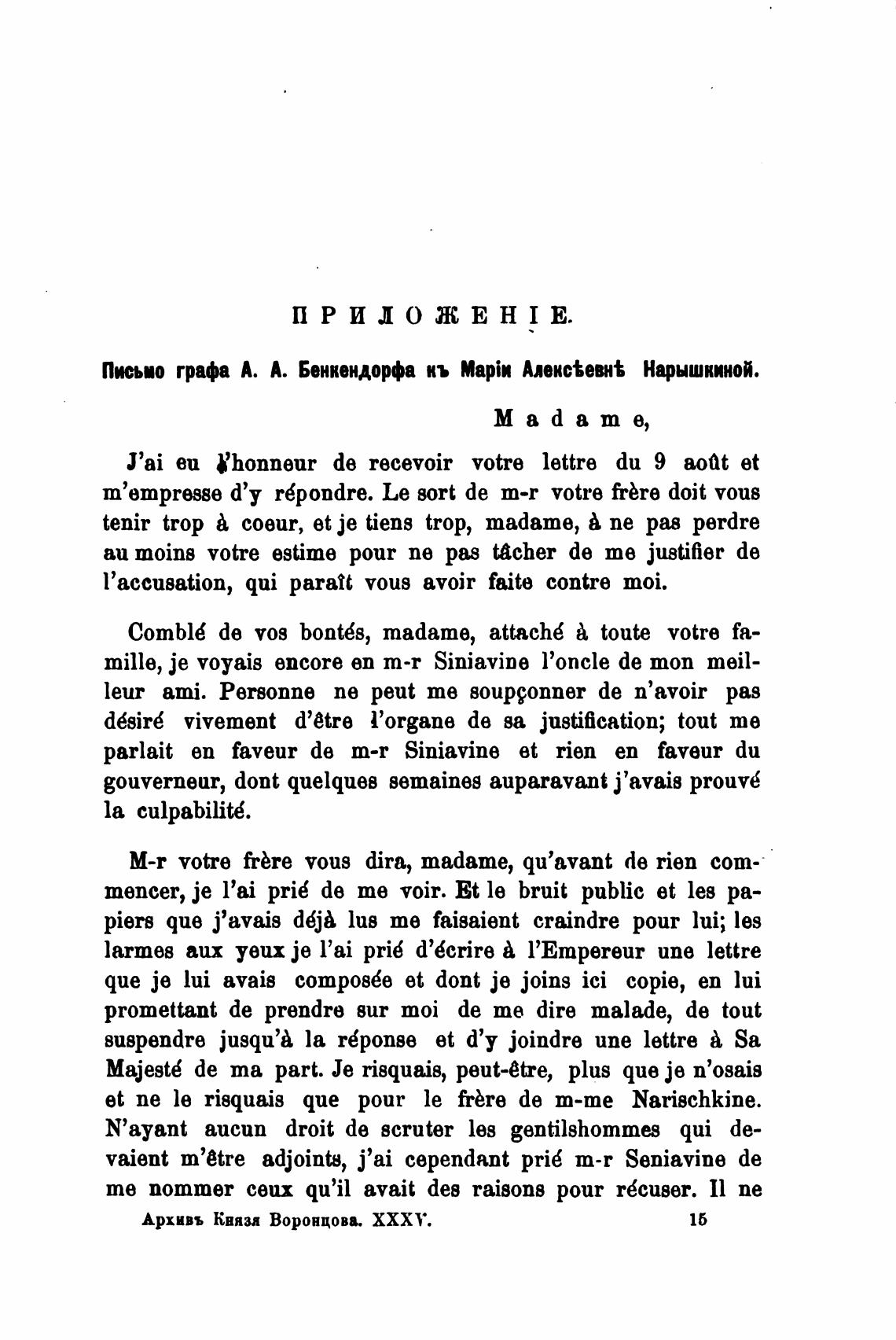 Письмо графа А. А. Бенкендорфа кь MapiI Нарышкиной.