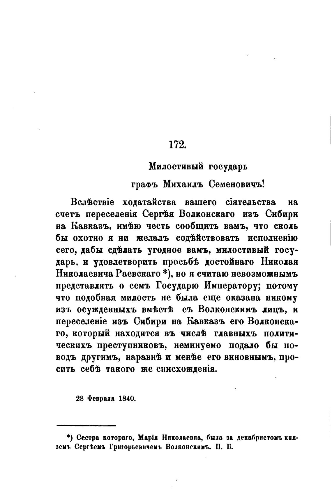 земъ Сергћемъ Григорьевичеиъ Волконскимъ. П. Б.