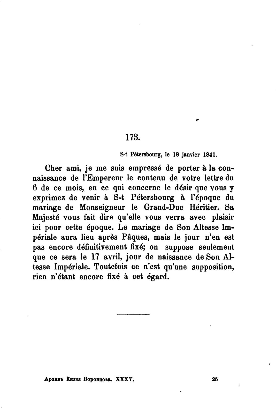 S-t P6tersbourg, le 18 janvier 1841.