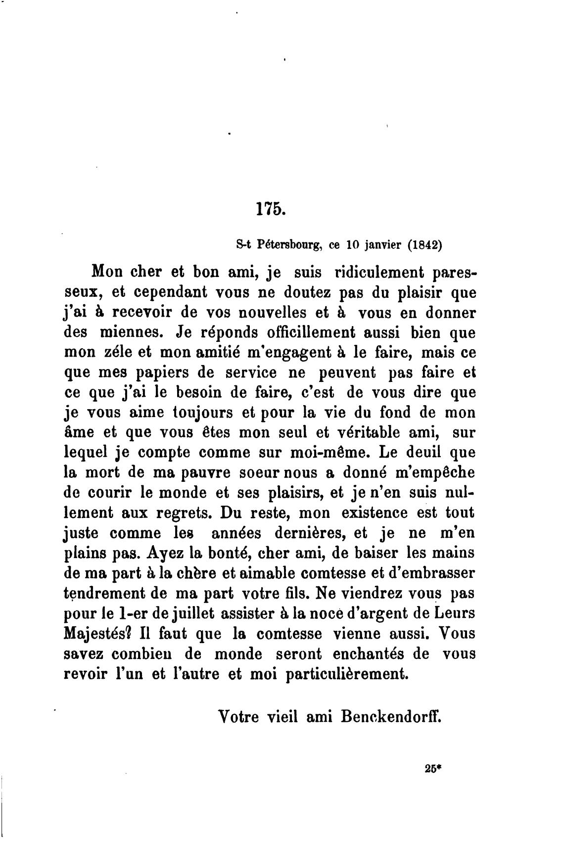 Votre vieil ami Benckendorf.