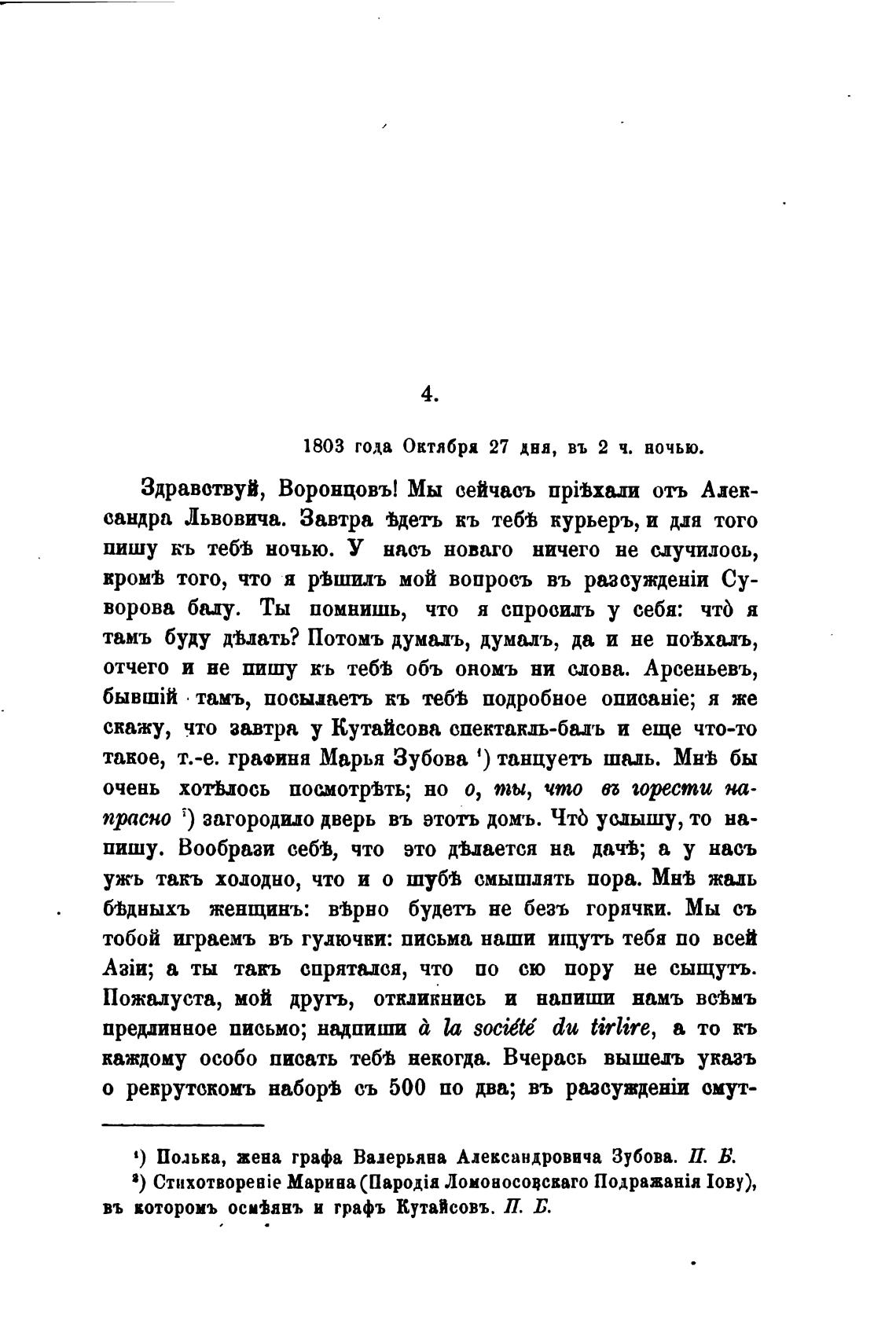 1) По.љка, жена графа Валерьяна Александровича Зубова. 11. В.