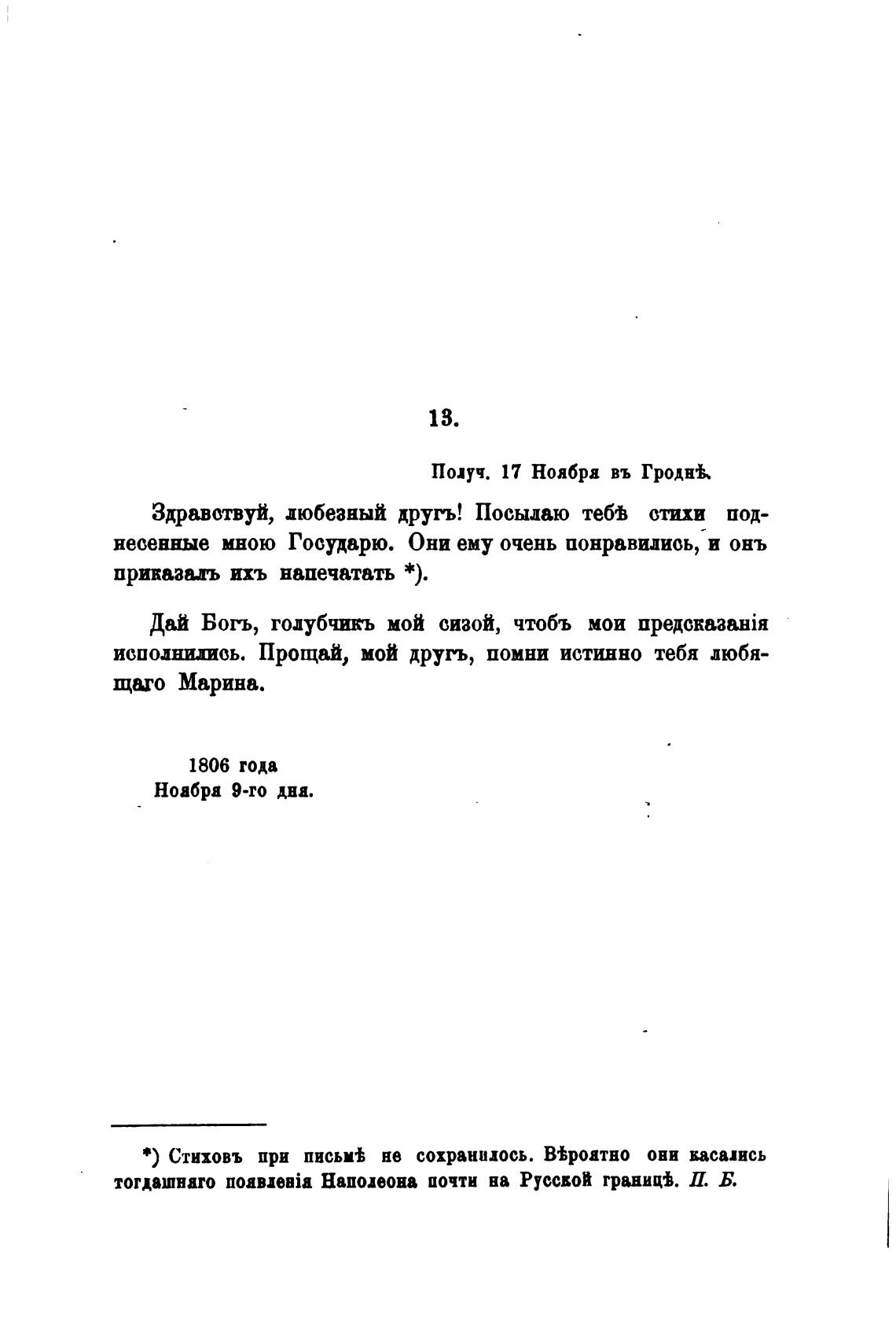 • ) Стиховъ при письм% не сохранилось. В"роатно ови васались