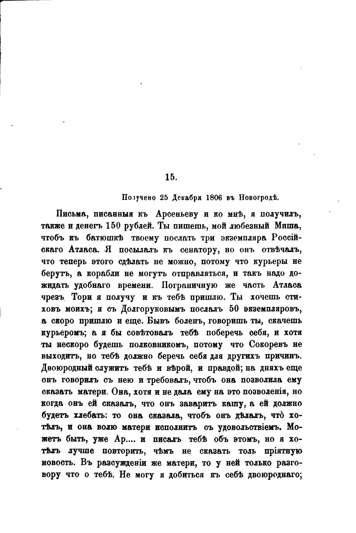 Письма, писанныя кь Арсеньеву и ко мнћ, я подучилъ,