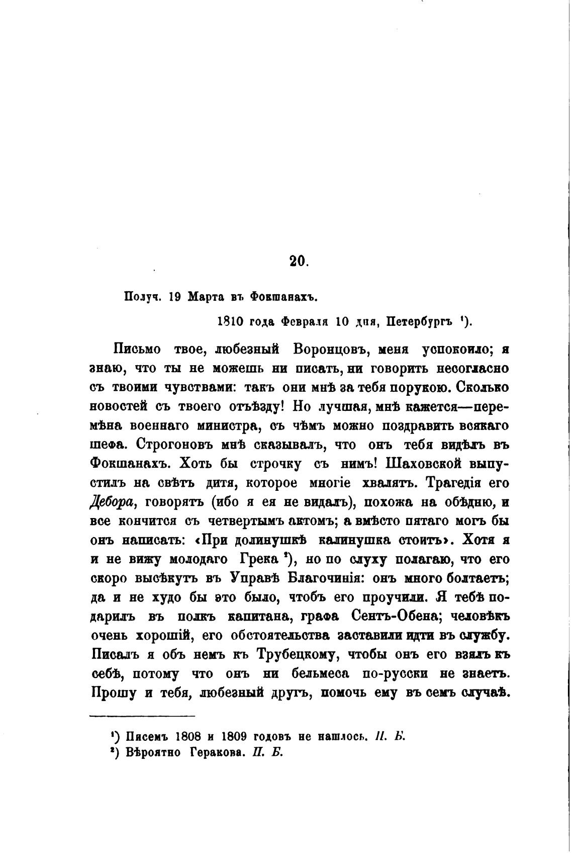 1) Писемъ 1808 и 1809 годовъ не нашлось. П. Б.